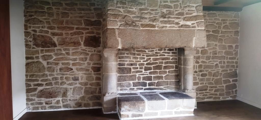 - Au rez-de-chaussée : Entrée, pièce à vivre avec une grande cheminée en pierres(poêle à bois ), cuisine, WC et lavabo.