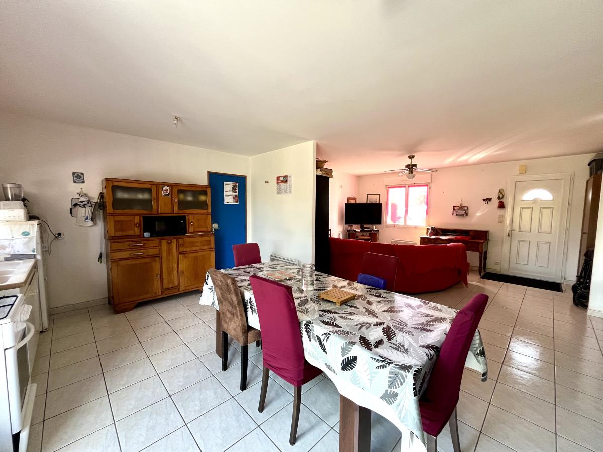 - au rez-de-chaussée: séjour/ salon ouvert sur coin cuisine, dégagement, toilette , salle d'eau, trois chambres, garage avec coin laverie.