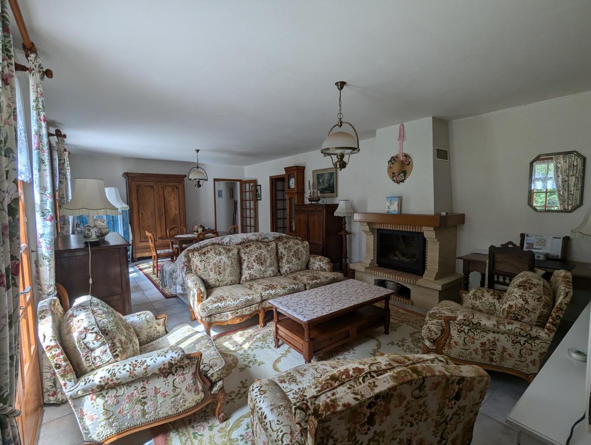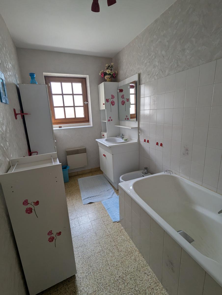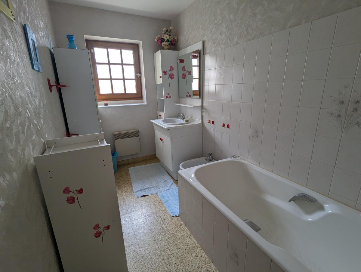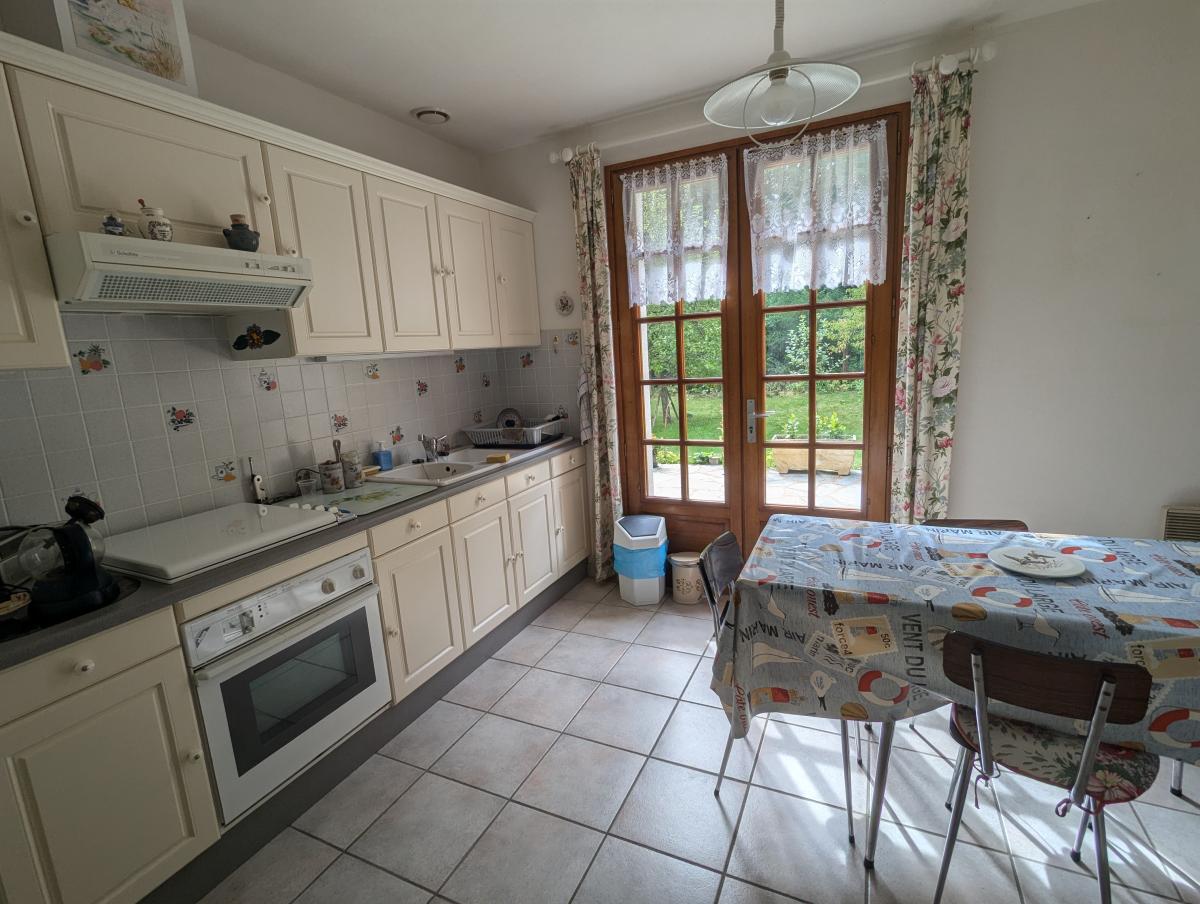Maison d'habitation comprenant une entrée, cuisine aménagée, un wc, un salon séjour avec cheminée avec un insert, un dégagement, deux chambres, une salle de bains, une salle d'eau et un garage. A l'étage, grand grenier aménageable.