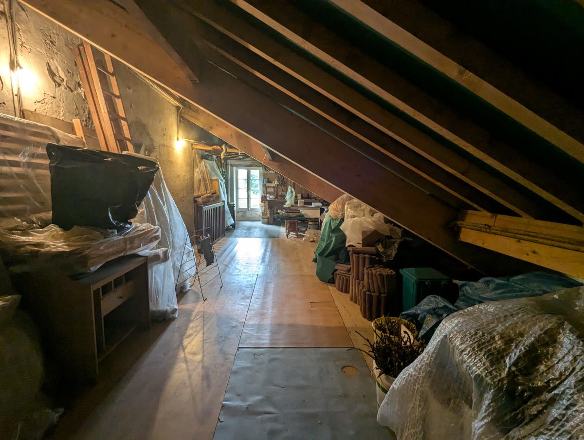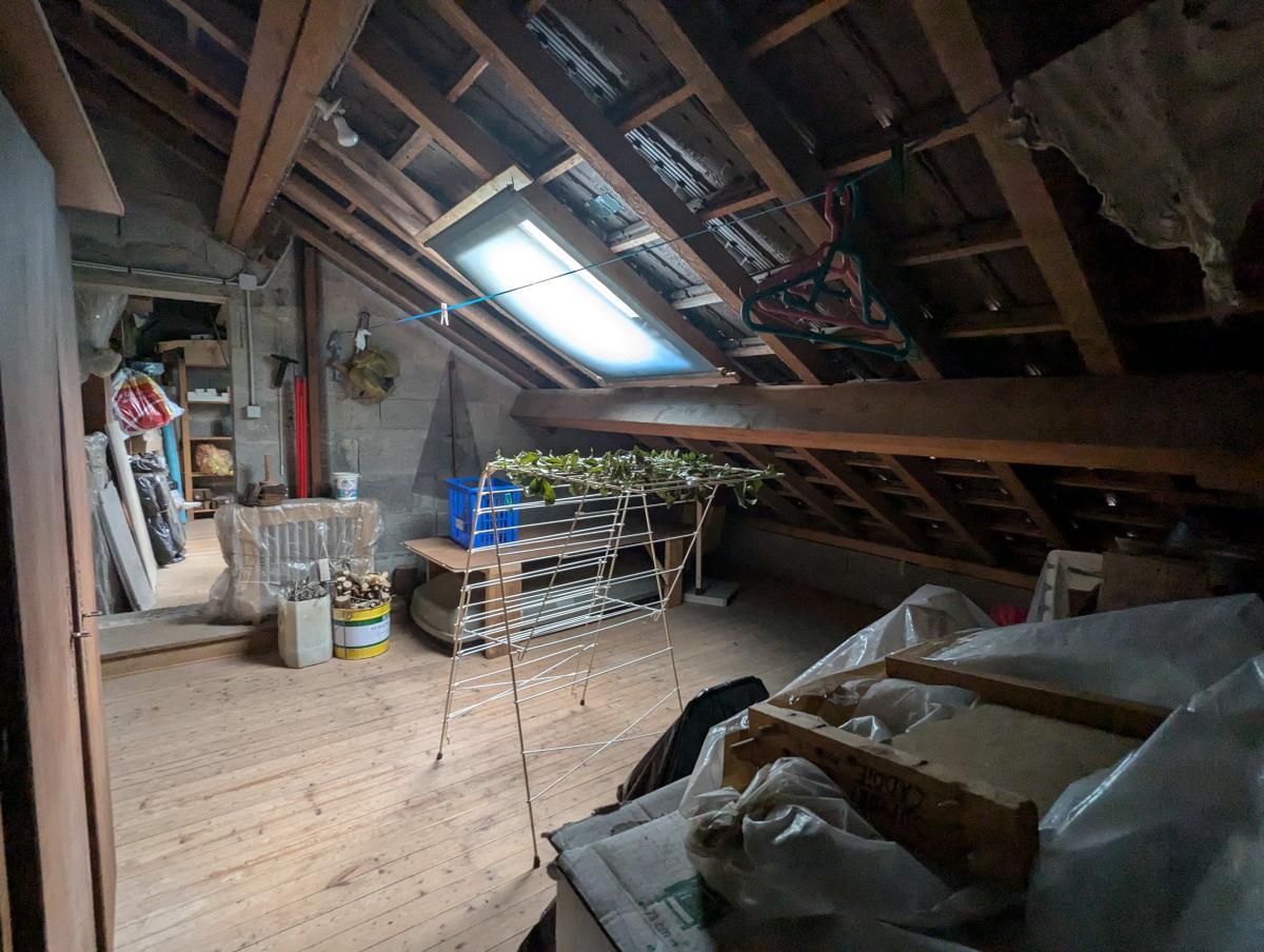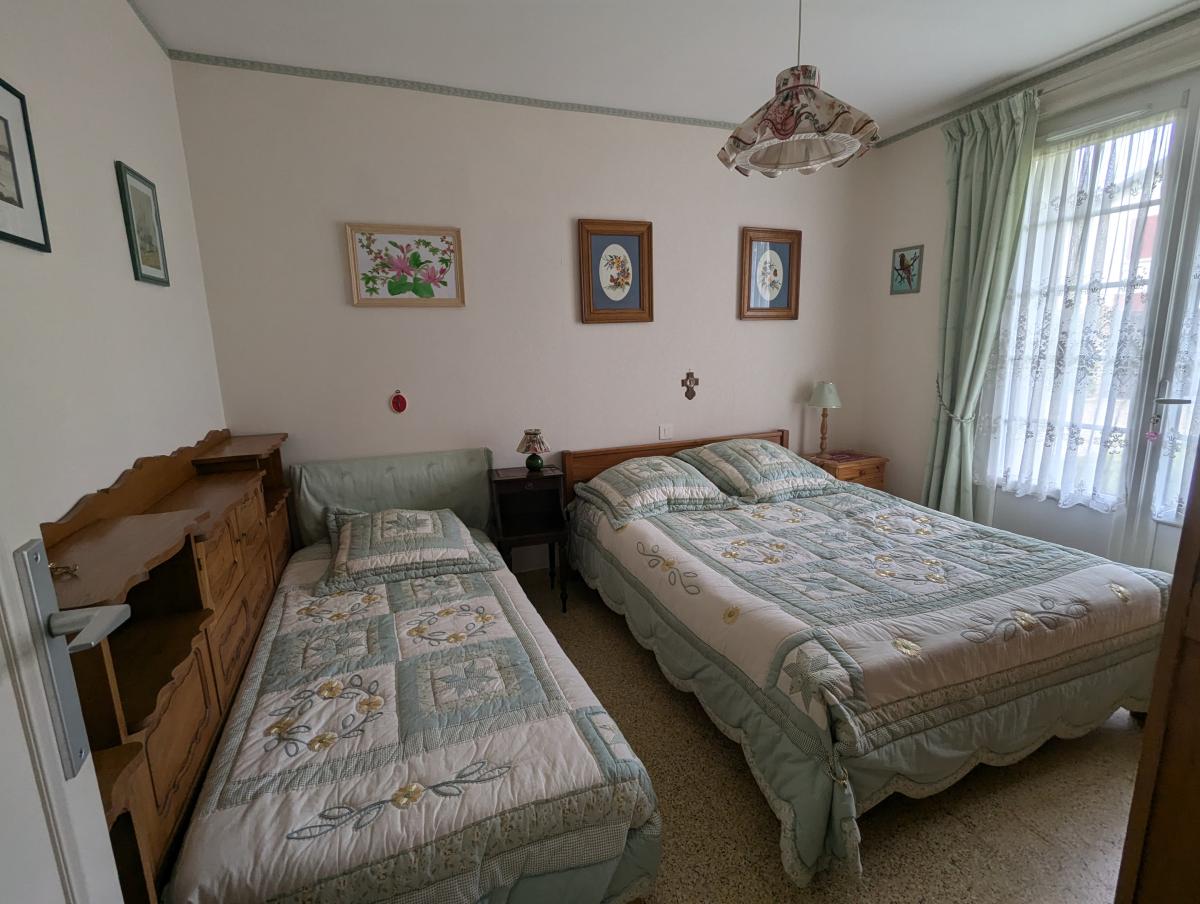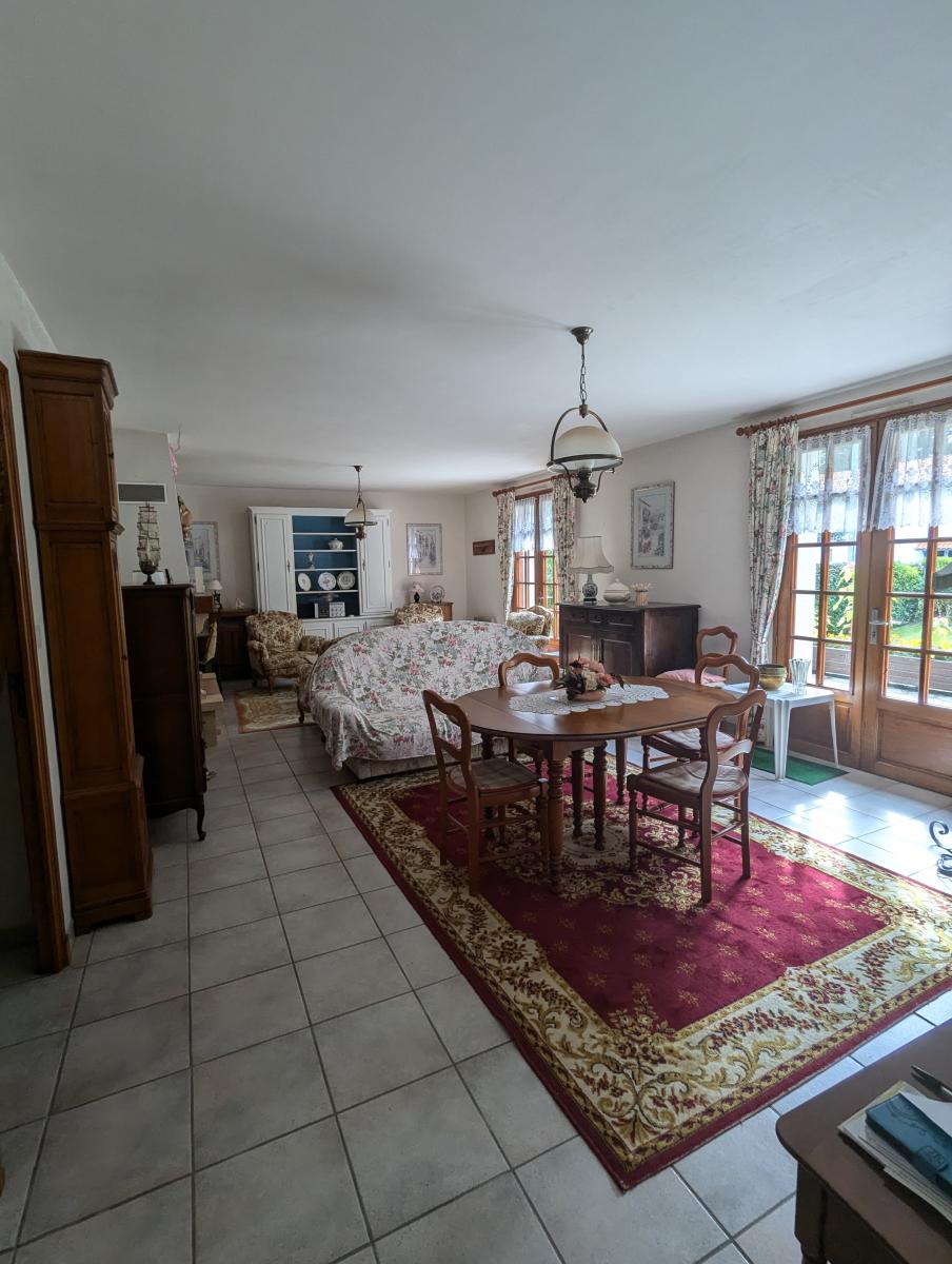 Maison d'habitation comprenant une entrée, cuisine aménagée, un wc, un salon séjour avec cheminée avec un insert, un dégagement, deux chambres, une salle de bains, une salle d'eau et un garage. A l'étage, grand grenier aménageable.