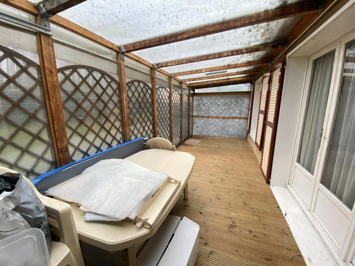 Terrasse couverte, jardin avec 2 abris et accès directe à la voirie, garage avec accès grenier et parking privé.
