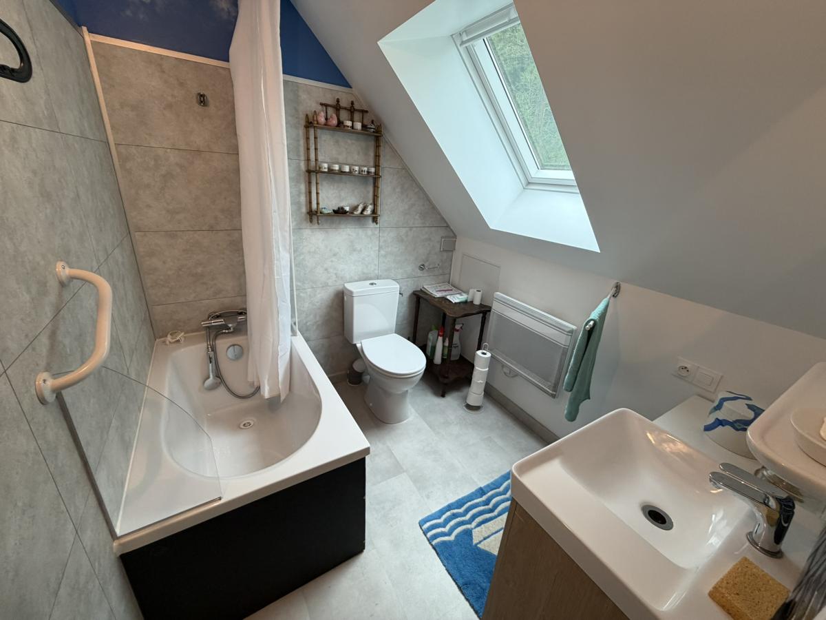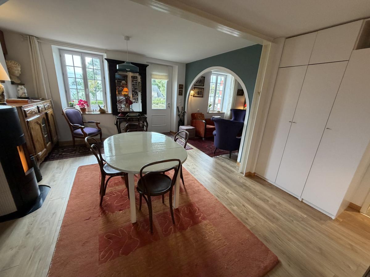 - Au rez de chaussée: séjour avec cheminée, placards et poêle à granulés, cuisine équipée, salle d'eau avec WC et douche à l'italienne, une grande chambre.