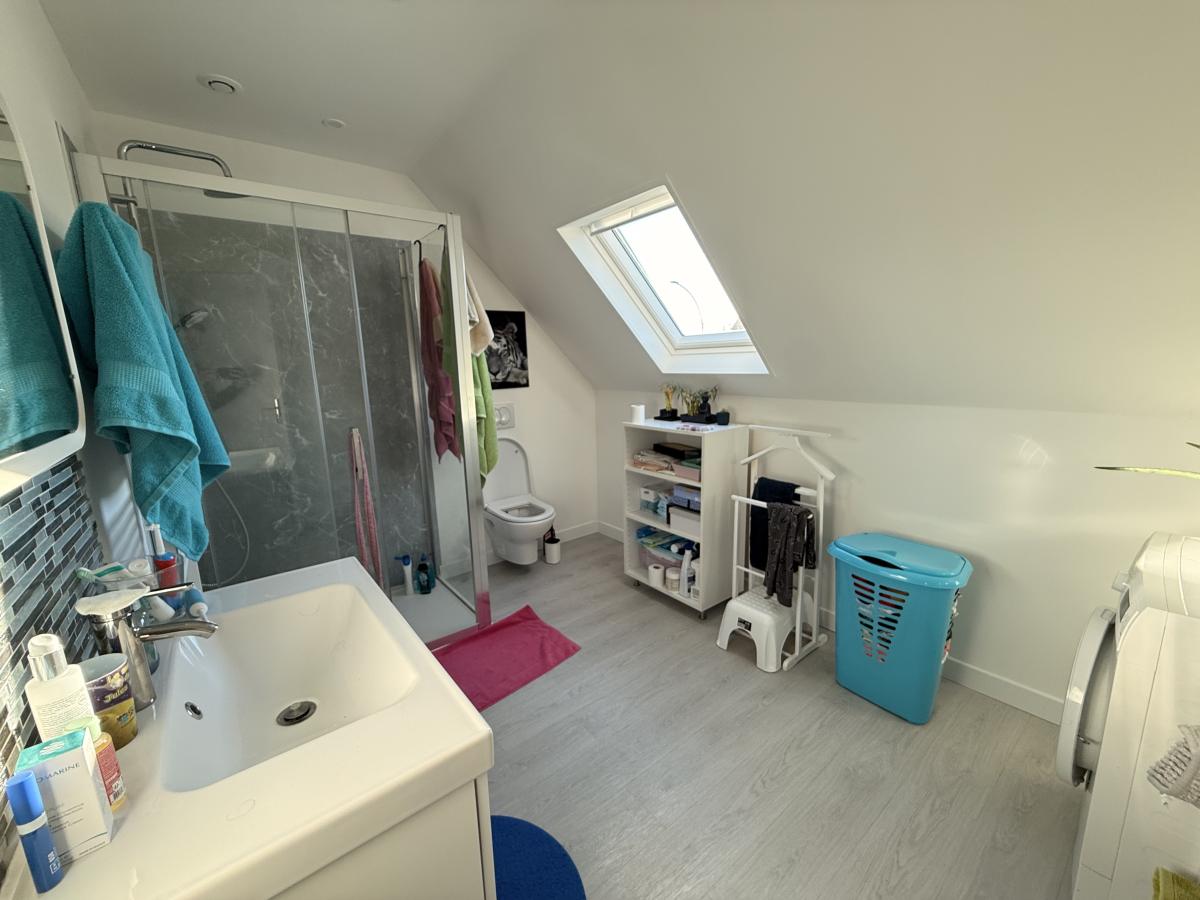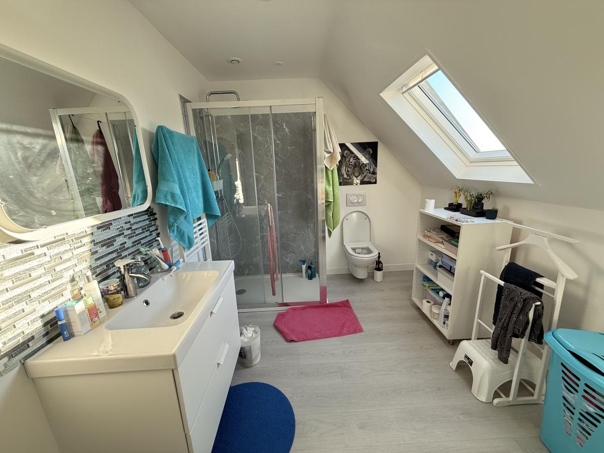 A l'étage un palier desservant trois chambres et une salle d'eau avec douche vasque et WC, accès au combles potentiellement aménageable.