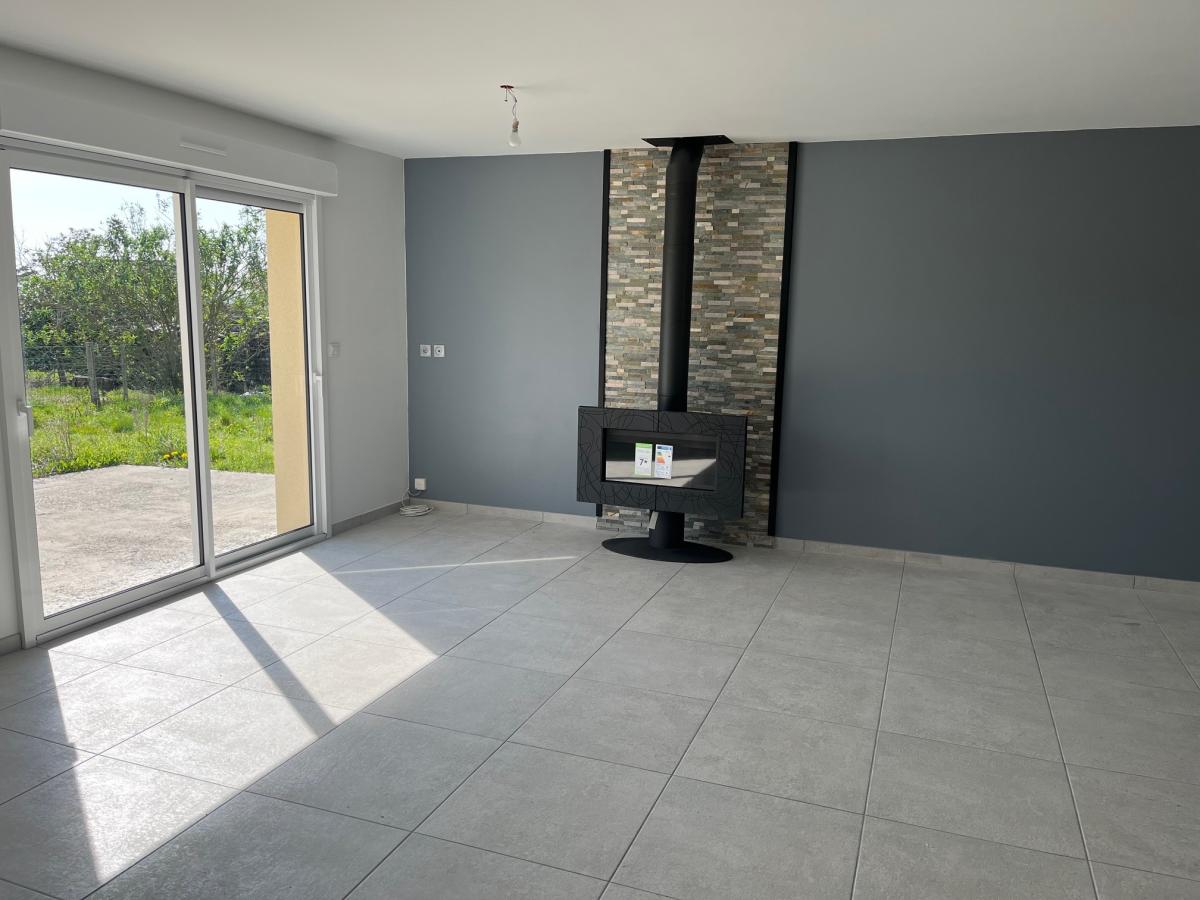 Entrée dans pièce de vie 50m² avec cuisine aménagée équipée ouverte toute neuve, dégagement, 3 chambres dont deux avec placards, salle d'eau avec grande douche à l'italienne, WC.