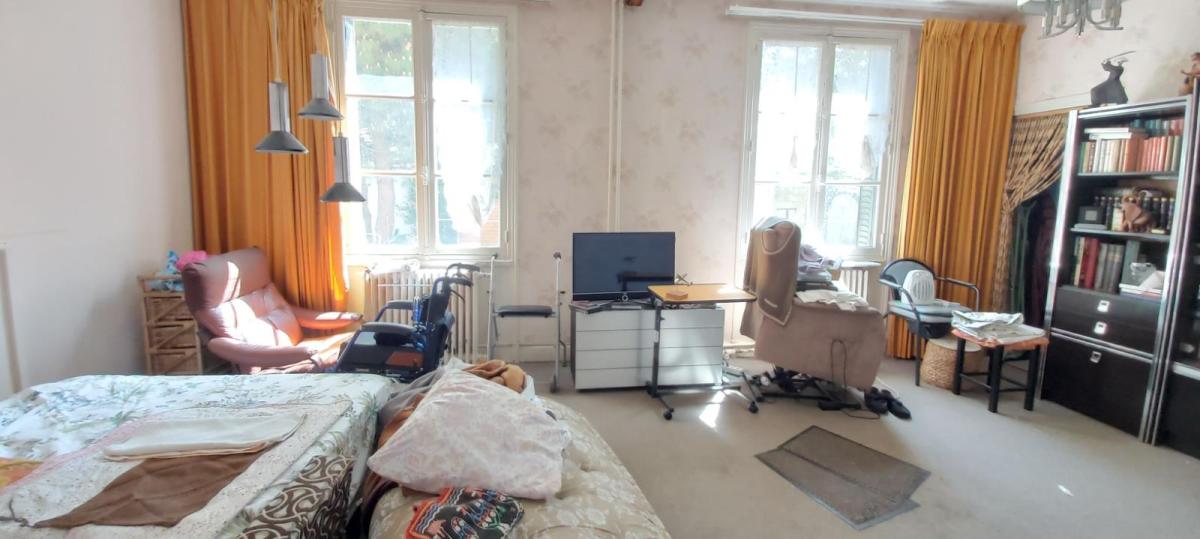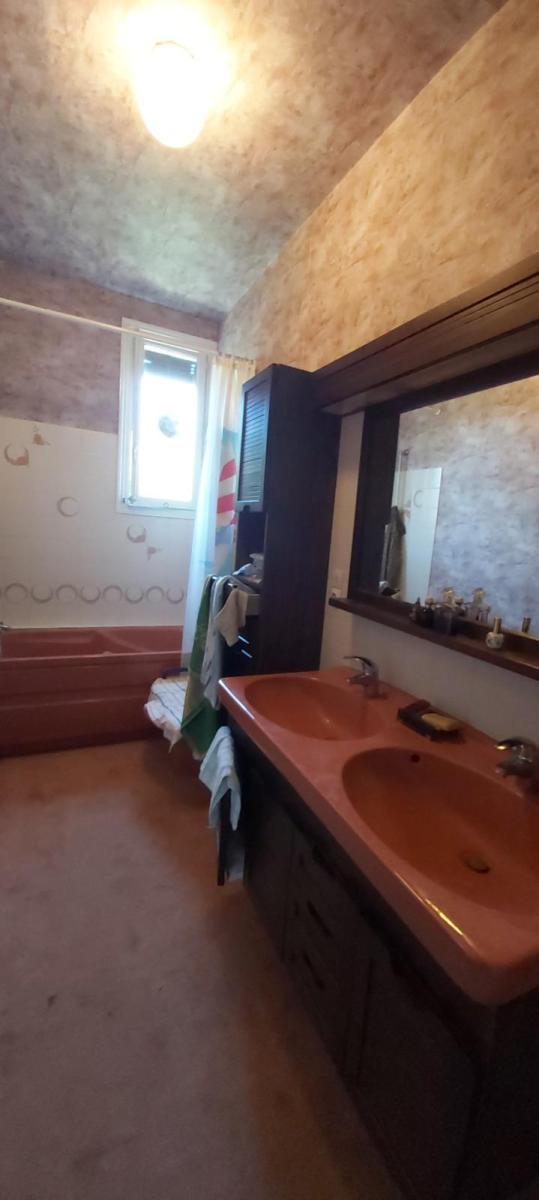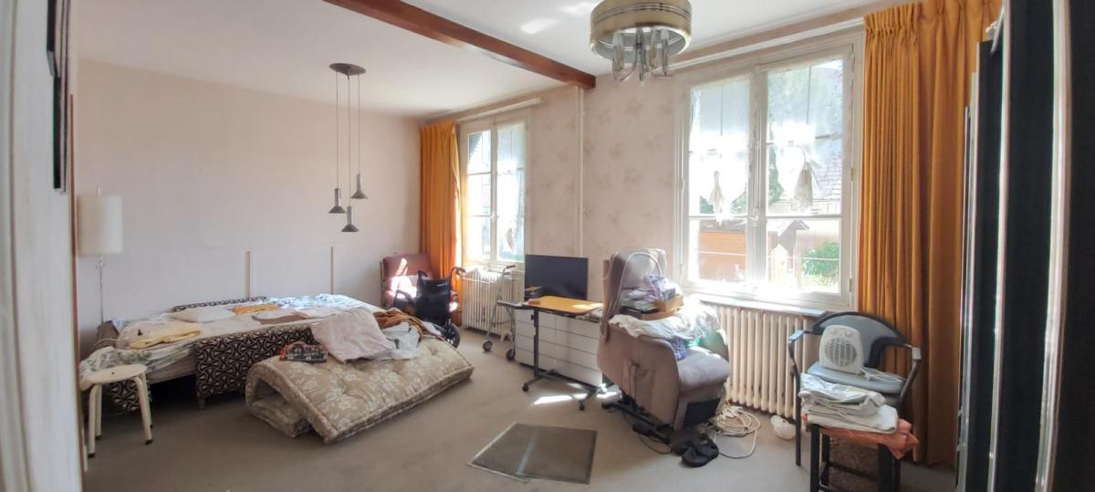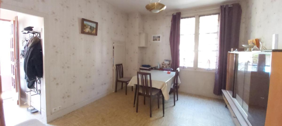Maison d'habitation jumelée, élevée sur cave divisée en deux parties, comprenant : Au rez-de-chaussée surélevé : entrée par couloir desservant, wc avec lave-mains, salon, salle-à-manger, petite cuisine, A l'étage : palier desservant wc avec lave-mains, trois chambres, salle-de-bains, Grenier au dessus, Chauffage au gaz, Garage, Jardin, le tout sur 340m². Les informations sur les risques auxquels ce bien est exposé sont disponibles sur le site Géorisques : www. georisques. gouv. fr