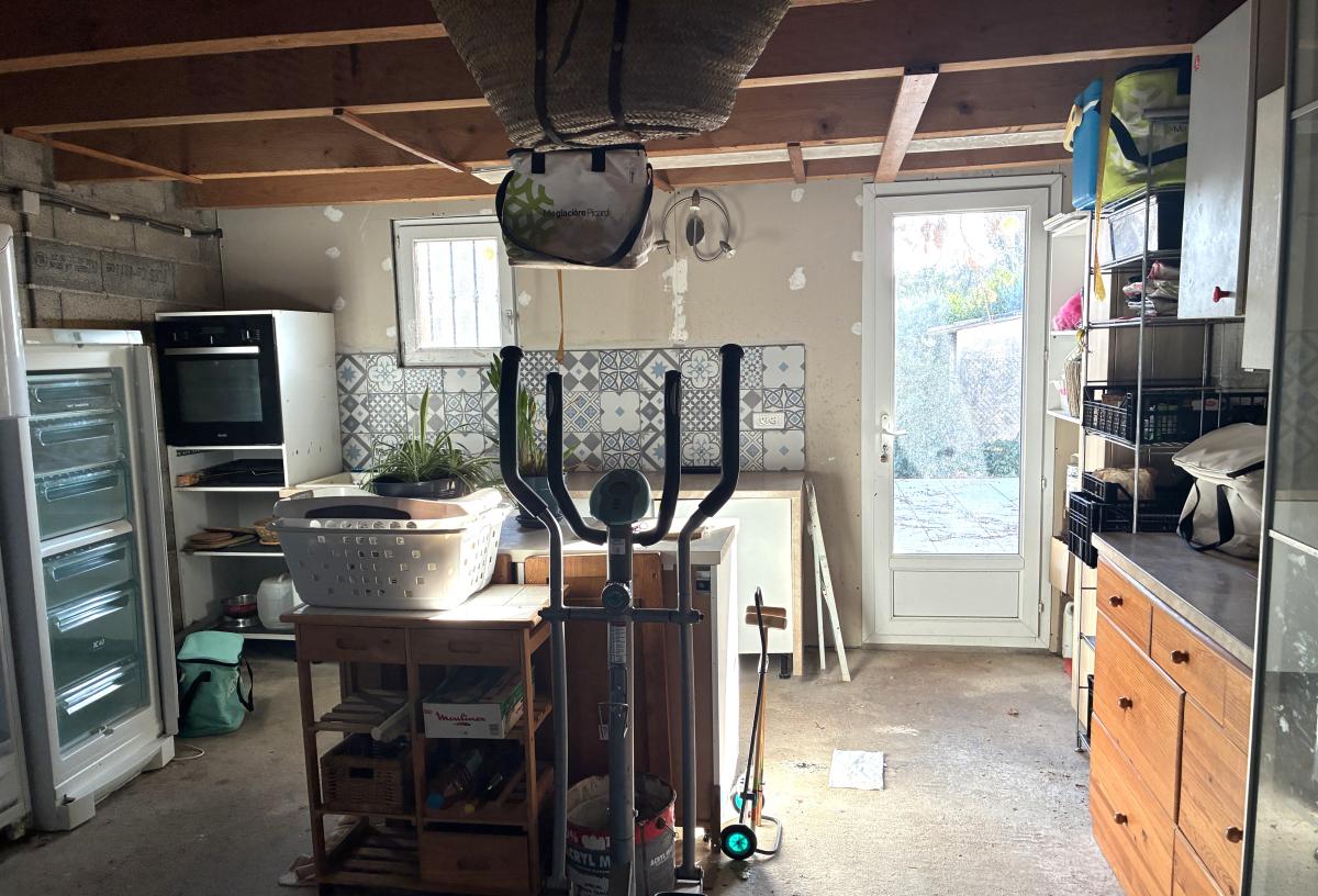 Elle se compose d’une cuisine équipée de type us, d’un vaste salon/séjour lumineux, de trois chambres, d’une salle d’eau et d’un WC indépendant. Un grand cellier de 28 m² avec mezzanine vient compléter l’ensemble, offrant un bel espace de rangement ou d’aménagement supplémentaire.