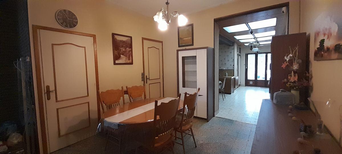 Tourcoing, 'Chêne Houpline', très bien située, à env. 13 mn à pied métro, environnement calme, rue agréable, maison des années 30 d'environ 95 m² (hors grenier) disposant d'une belle et grande terrasse avec un grand jardin sans vis-à-vis et une bonne exposition sud/est. La maison se compose au Rdc d'un salon/séjour, cuisine avec espace repas, sdb (douche et vasque), wc séparés. Les chambres réparties sur les deux niveaux offrent des surfaces variant de 11,5 m² à 14,6 m². La maison dispose également d'une pièce grenier, idéale pour du rangement supplémentaire ou un potentiel aménagement. Parmi les atouts majeurs de cette maison, on note : un jardinet à l'avant de la maison qui est en retrait de la rue, une jolie façade de caractère, un chauffage central au gaz, potentiel 4ème chambre, une belle largeur 4.4m, et un garage possible en location à proximité. Quelques travaux de confort et de modernisation sont à prévoir. DPE D 224 et D 48. Prix de vente 148 000 € dont prix net vendeur 140 000 € et dont 8 000 € TTC (5.71 %) d'honoraires de négociation à charge acquéreur. Les informations sur les risques auxquels ce bien est exposé sont disponibles sur le site Géorisques : www. georisques. gouv. frConsultez nos tarifs : Selon barème de l'étude chargée de la vente : < 100.000 € = 7.000 € TTC, 100.000 € et 300.000 € = 3 % TTC sur la partie du prix supérieur à 100.000 € qui se cumule avec la tranche précédente, > 300.000 € = 5 % TTC sur la partie du prix supérieur à 300 000 € qui se cumule avec les tranches précédentes, arrondis à la centaine d’euros la plus proche, minimum de perception pour les parkings 2.000 € TTC et 5.000 € TTC pour les garages.