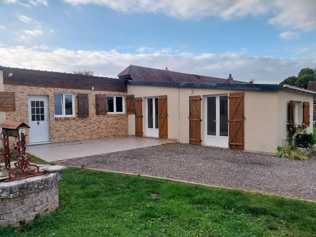 Maison de plain pied comprenant : salle salon de 26.5 m² ouverte sur petite cuisine aménagée, dégagement, wc, salle de bain, buanderie, 3 chambres (14,17 et 16 m2) dont 2 en enfilade.