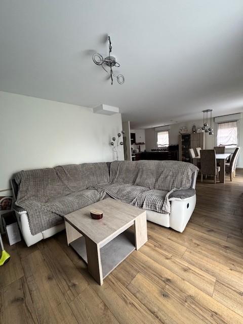Situé sur la commune de Guécélard, pavillon de plain-pied construit en 2012 d'une superficie habitable de 97m² comprenant une entrée, un séjour/salon ouvert sur la cuisine aménagée et équipée de 38m², trois chambres dont une de 18m² et les deux autres de 10m², une salle bains, un wc, un garage de 18m². Terrain clos et arboré avec un abri de jardin. Huisseries PVC double vitrage, volets roulants manuels, convecteurs électriques, assainissement collectif, adoucisseur.