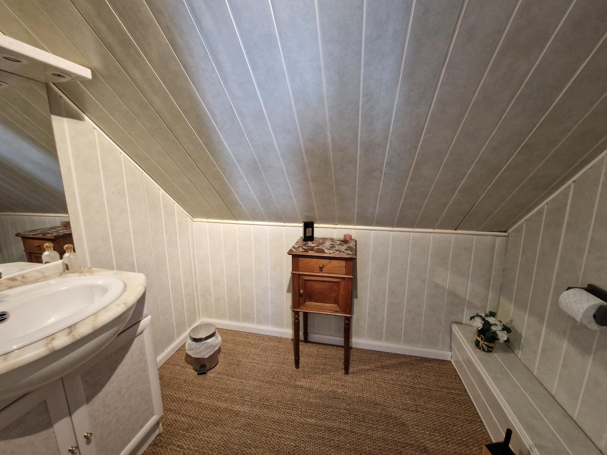 - étage : palier, cabinet de toilette avec lavabo et wc, deux chambres mansardées avec placard,
