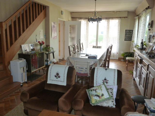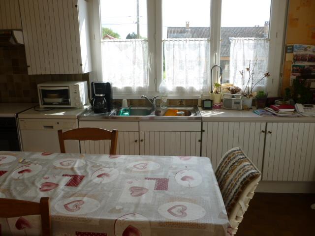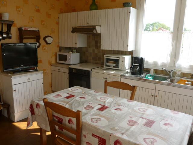 RDC : Cuisine, Séjour-Salon avec cheminée feu de bois, 1 Chambre, Salle de bains, WC
