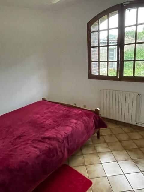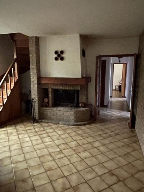 Maison de ville mitoyenne par garage/ proche d'entrée construite en briques couverte en tuiles, comprenant entrée cuisine, arrière cuisine, séjour avec CFBI, WC, salle de bain deux chambres. Cave Beau grenier aménageable, grand Jardin porche d'entrée dépendances. TAE chauffage central au gaz de ville.