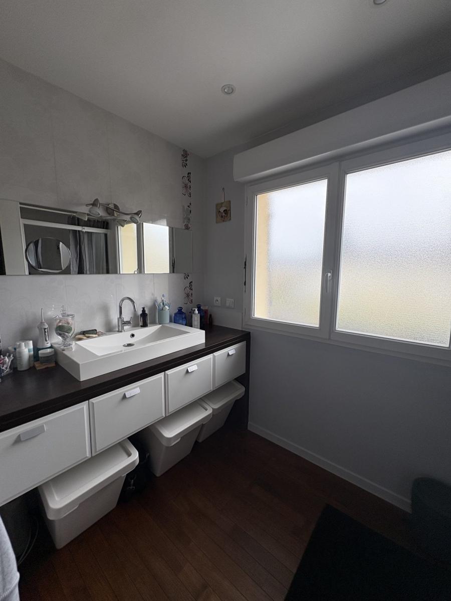 A l' étage trois chambres indépendantes, une salle d’eau  avec douche, une pièce palière aménagée en dressing.