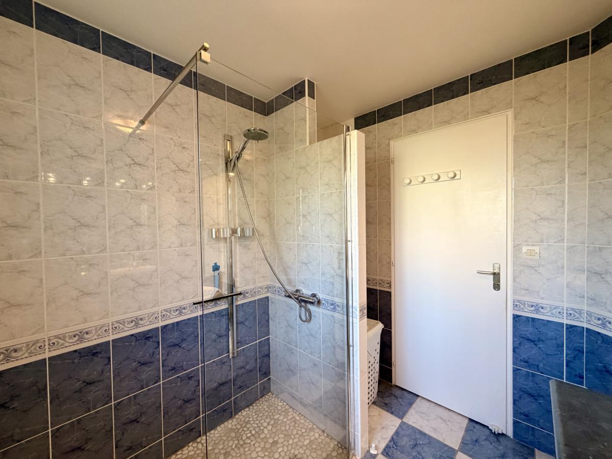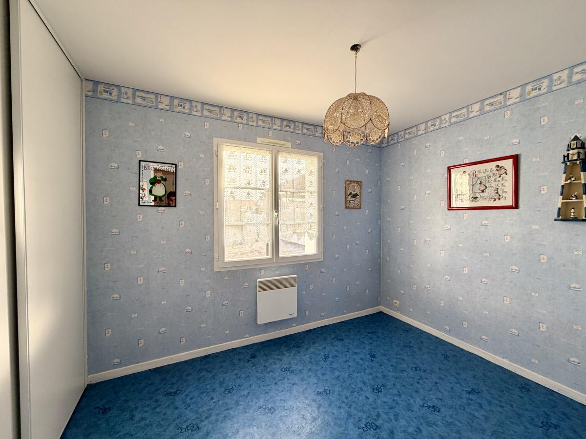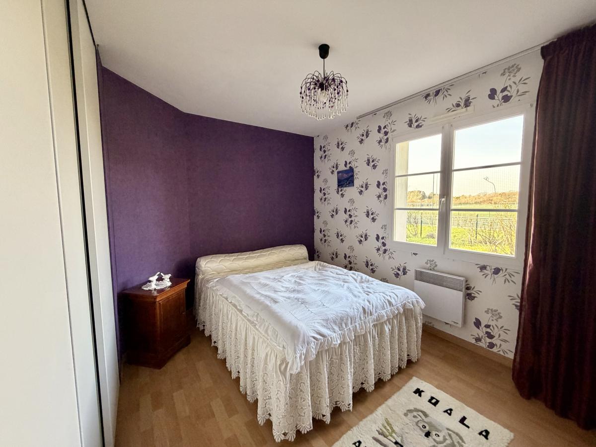 Une entrée, une pièce de vie (salon/salle à manger), une véranda, une cuisine ouverte, un dégagement, trois chambres avec placard, une salle d'eau, un W.C séparé, une buanderie et garage attenant.