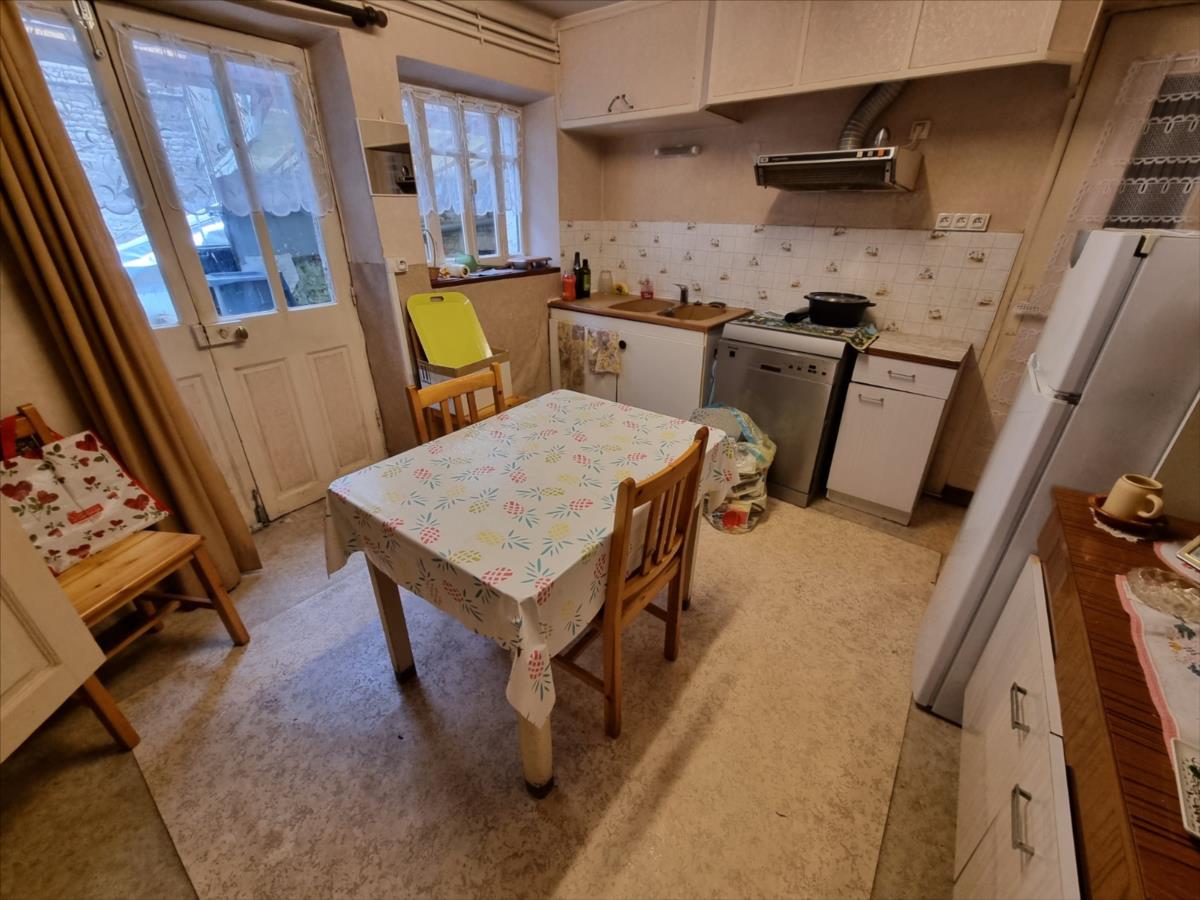Ancien local avec vitrine (séjour) cheminée cuisine caves wc cour sur l'arrière garage/dépendances.