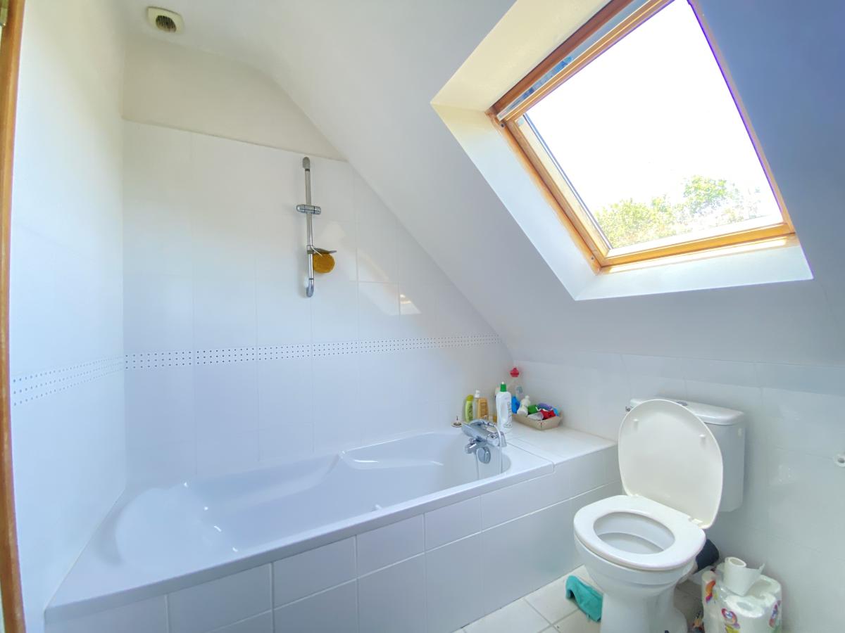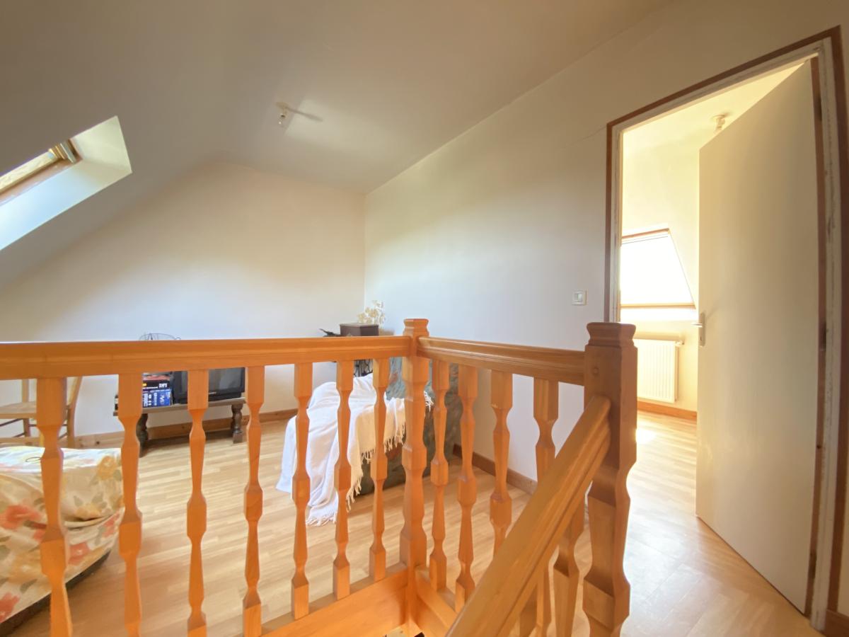 Étage : deux grandes chambres, une mezzanine idéale pour un bureau ou un espace de jeu, et une salle de bains avec WC.
