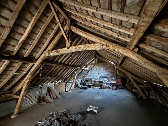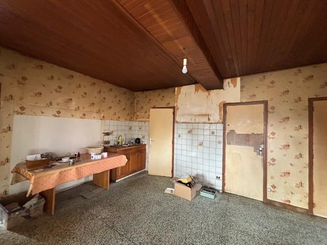 BAISSE DE PRIX. Maison d'habitation à rénover entièrement, comprenant : Ancienne véranda, Cuisine, Séjour avec Poêle à Bois, 3 Chambres, Petite salle de bains, Salle de douce-WC. Grenier aménageable. Chauffage central Fuel. Dépendance d'environ 70 m² avec étage aménageable.