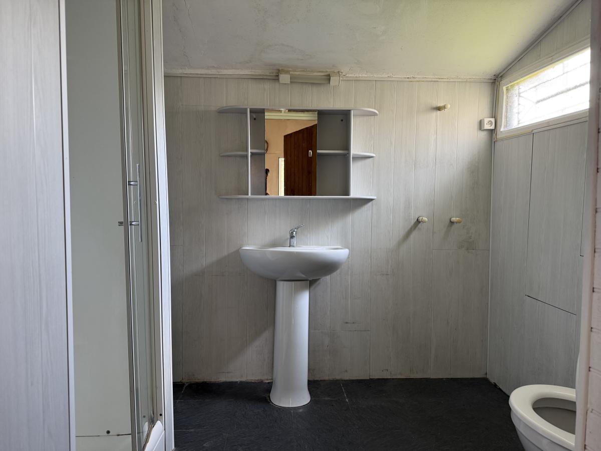- Au rez-de-chaussée : cuisine, salle à manger, dégagement, salle de douches avec WC.