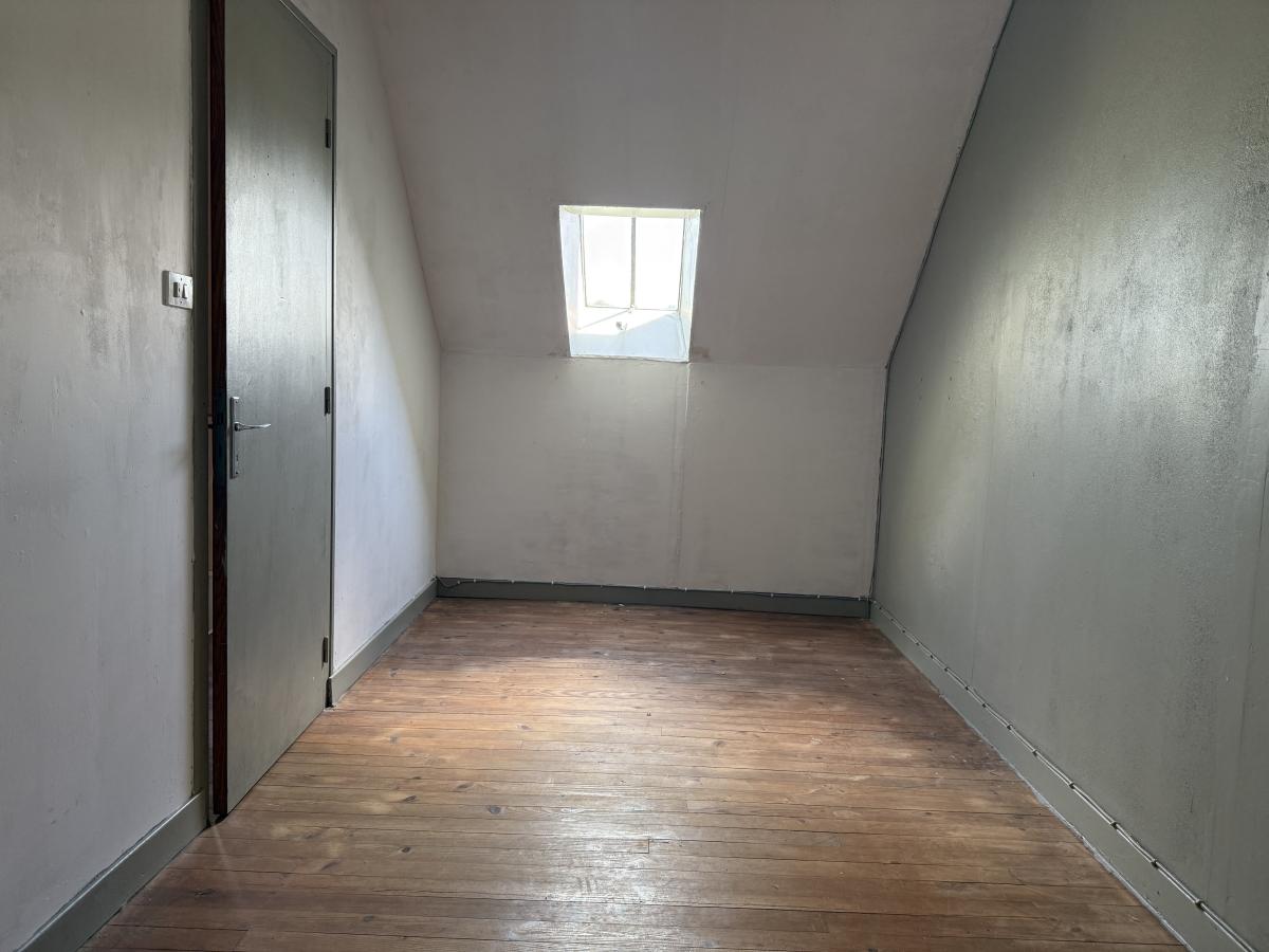 - À l’étage : deux chambres, bureau.
