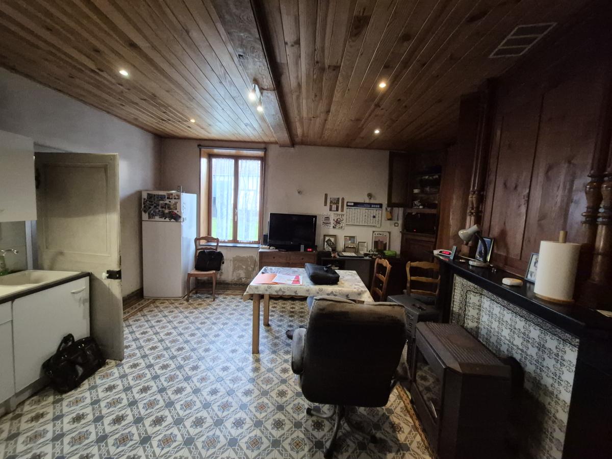 Un espace cave est également présent. La maison est non mitoyenne et nécessite des travaux de rénovation. Les huisseries sont en bois avec simple vitrage.