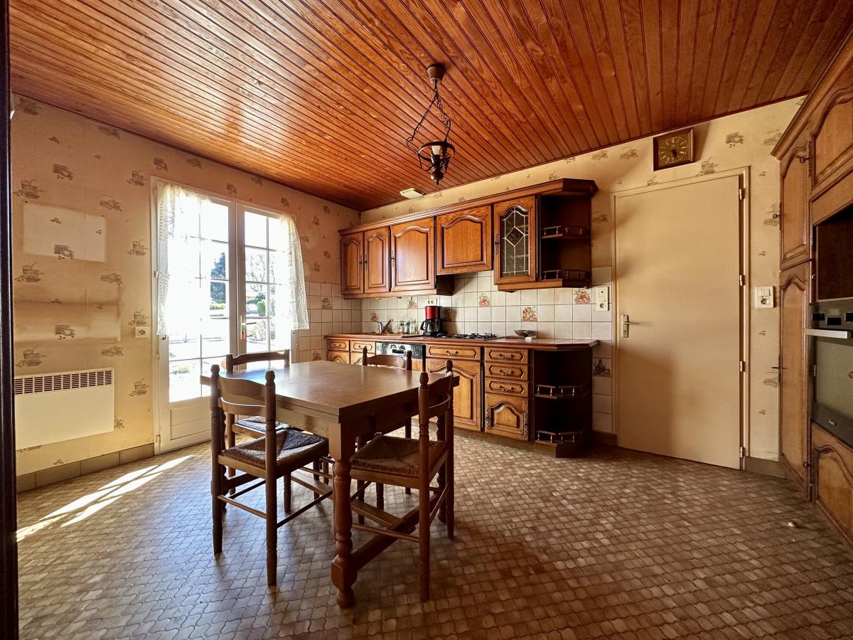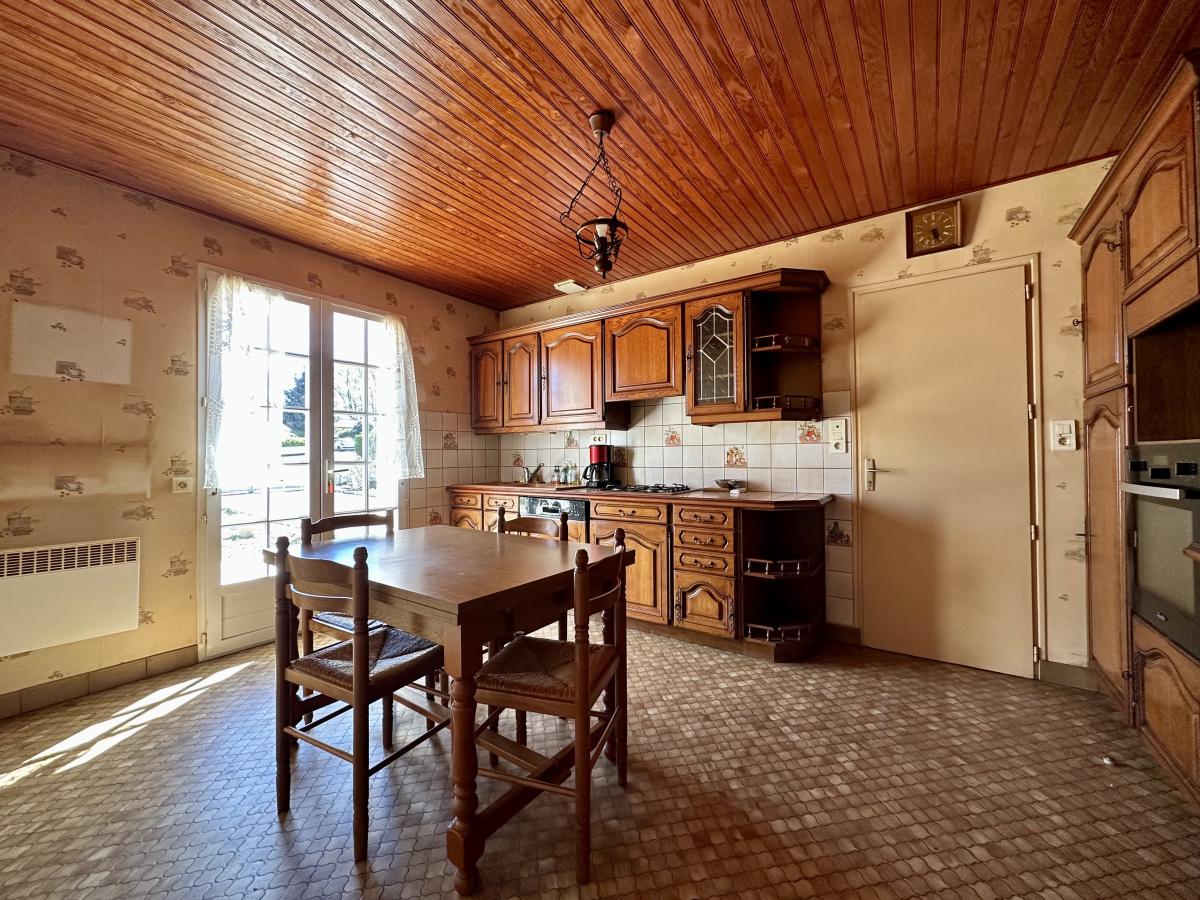 La maison composée d'une entrée avec placard, cuisine aménagée, salon/séjour (avec cheminée insert qui permet de chauffer les pièces de vie et deux chambres), trois chambres, salle d’eau, WC et garage avec grenier.