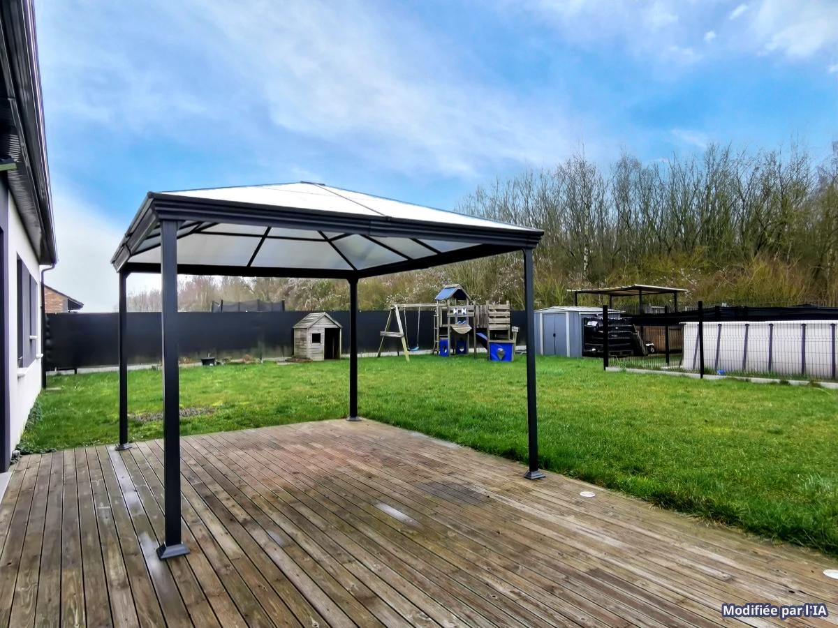 - d'une terrasse en bois (la pergola sera retirée pour la vente) ;