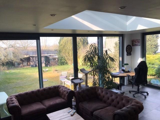 Au rez-de-chaussée : entrée, cuisine aménagée et équipée , séjour/salon avec poêle à granulé, véranda, une chambre, bureau, salle de bain, W.C.