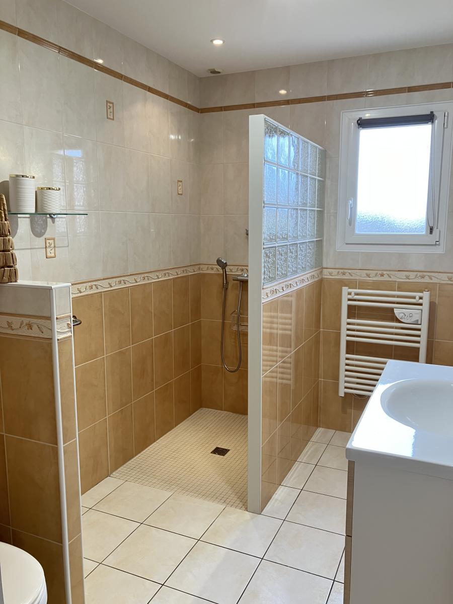 L’espace nuit se compose de trois chambres, d’une salle d’eau avec WC, ainsi que de toilettes séparées.