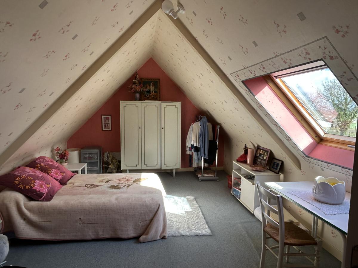 - A l'étage : deux chambres avec placards, salle de bains avec WC, grenier.