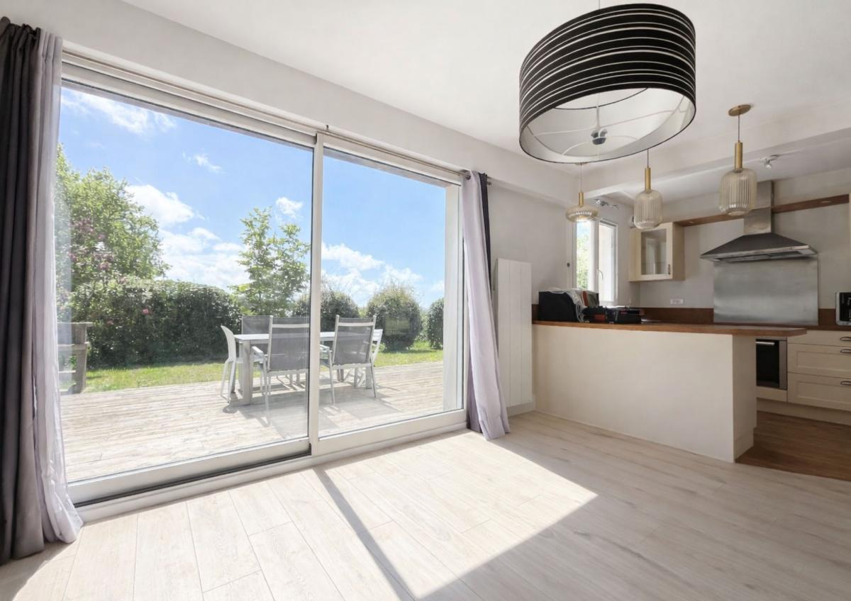 À l’extérieur, la terrasse bois avec son store banne exposée plein sud invite à la détente face à un environnement dégagé et préservé. La parcelle, entièrement close avec portail, garantit confort et sécurité.