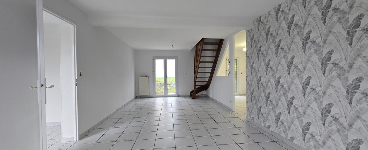 - Au rez-de-chaussée : Entrée, séjour traversant, cuisine non aménagée, une chambre, WC.