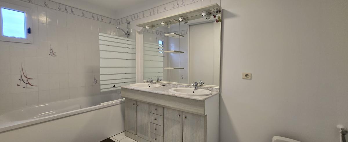 - A l'étage : Palier, trois chambres avec placard, salle de bains.