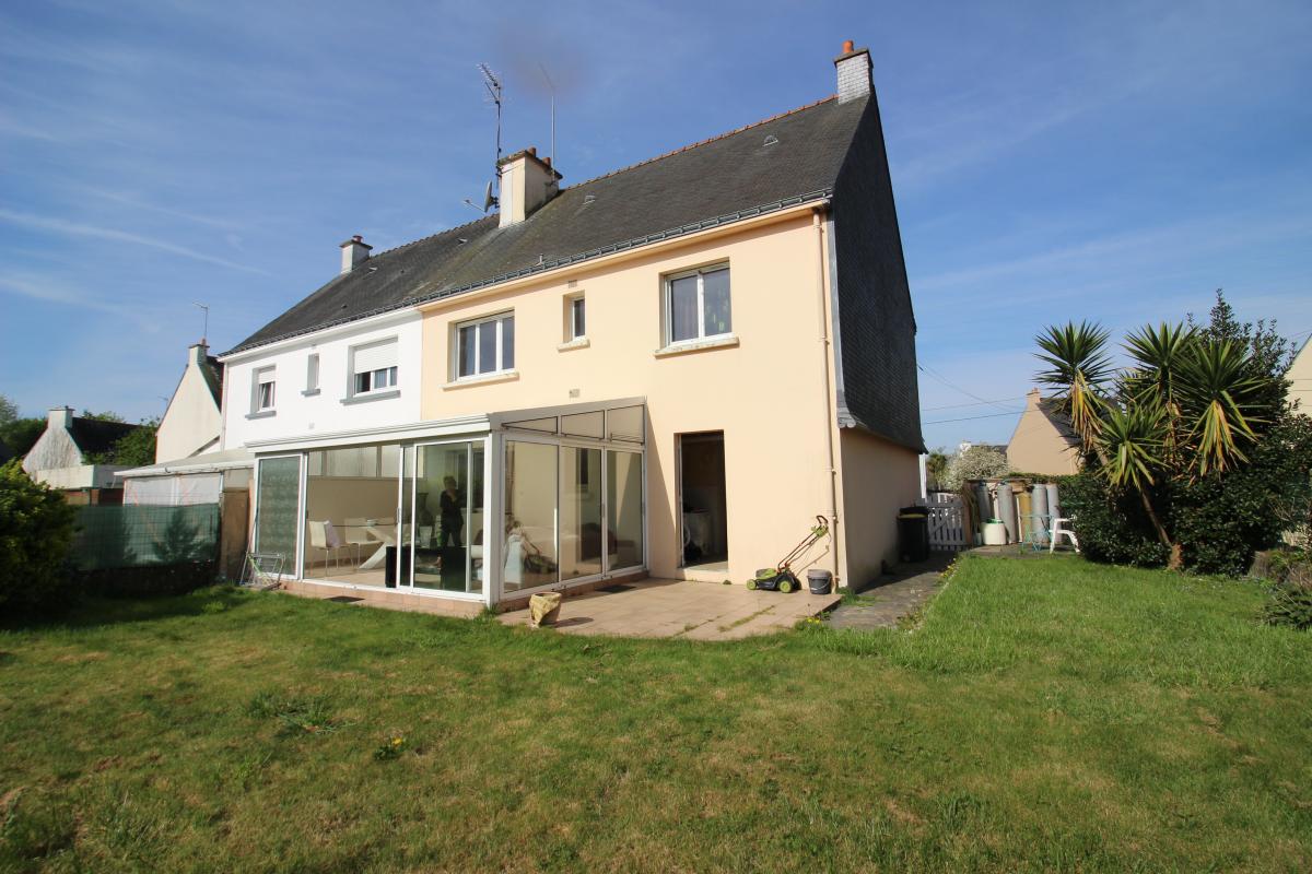 Située dans le centre de QUEVEN, maison mitoyenne d'un côté d'environ 103 m² sur parcelle de 350 m² comprenant :