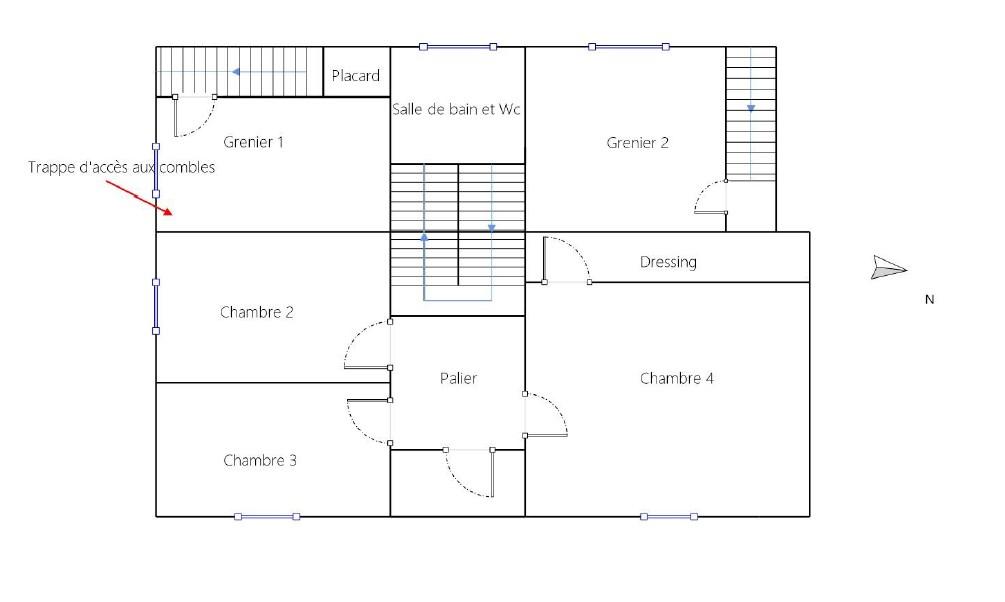 - à l’étage : palier desservant 3 chambres dont une avec dressing