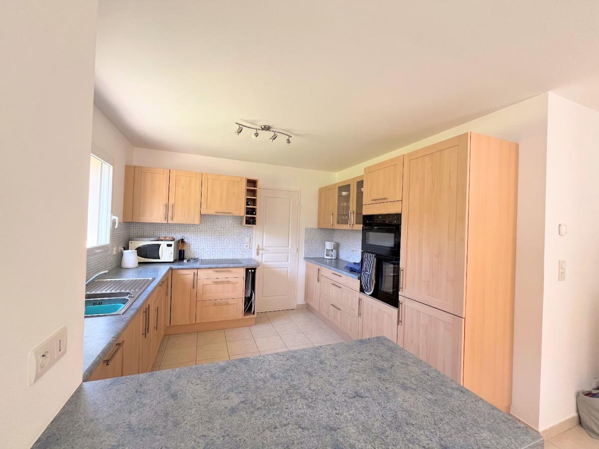 Côté confort : pièce à vivre de près de 45 m2, cuisine équipée, menuiseries aluminium double vitrage avec volets roulants électriques, chauffage électrique au sol au rez-de-chaussée, convecteurs à l’étage, aspiration centralisée.