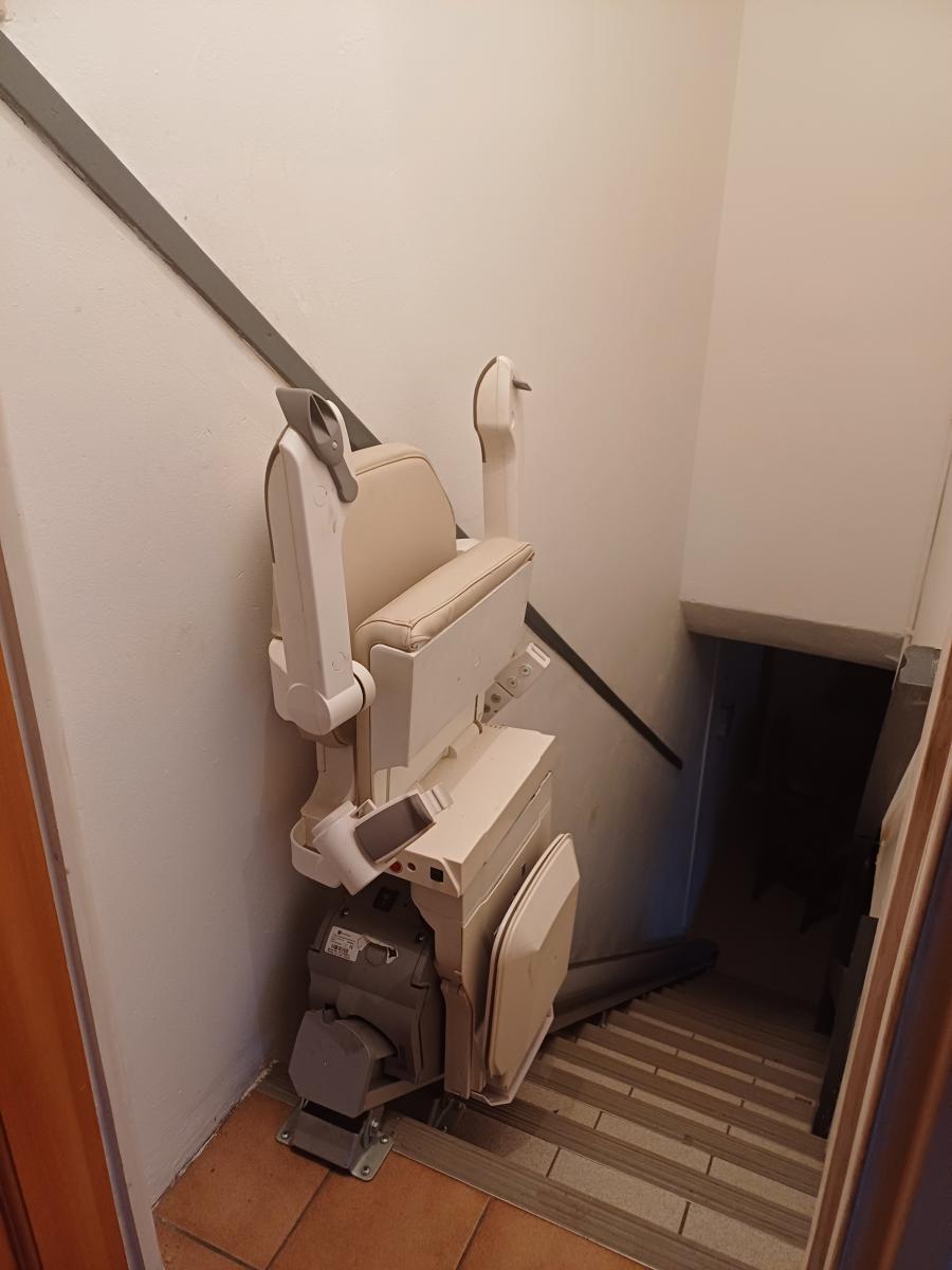 - Au rez-de-chaussée surélevé avec monte escalier électrique : entrée, cuisine aménagée et équipée, séjour avec cheminée, dégagement, salle d’eau, trois chambres et toilettes.