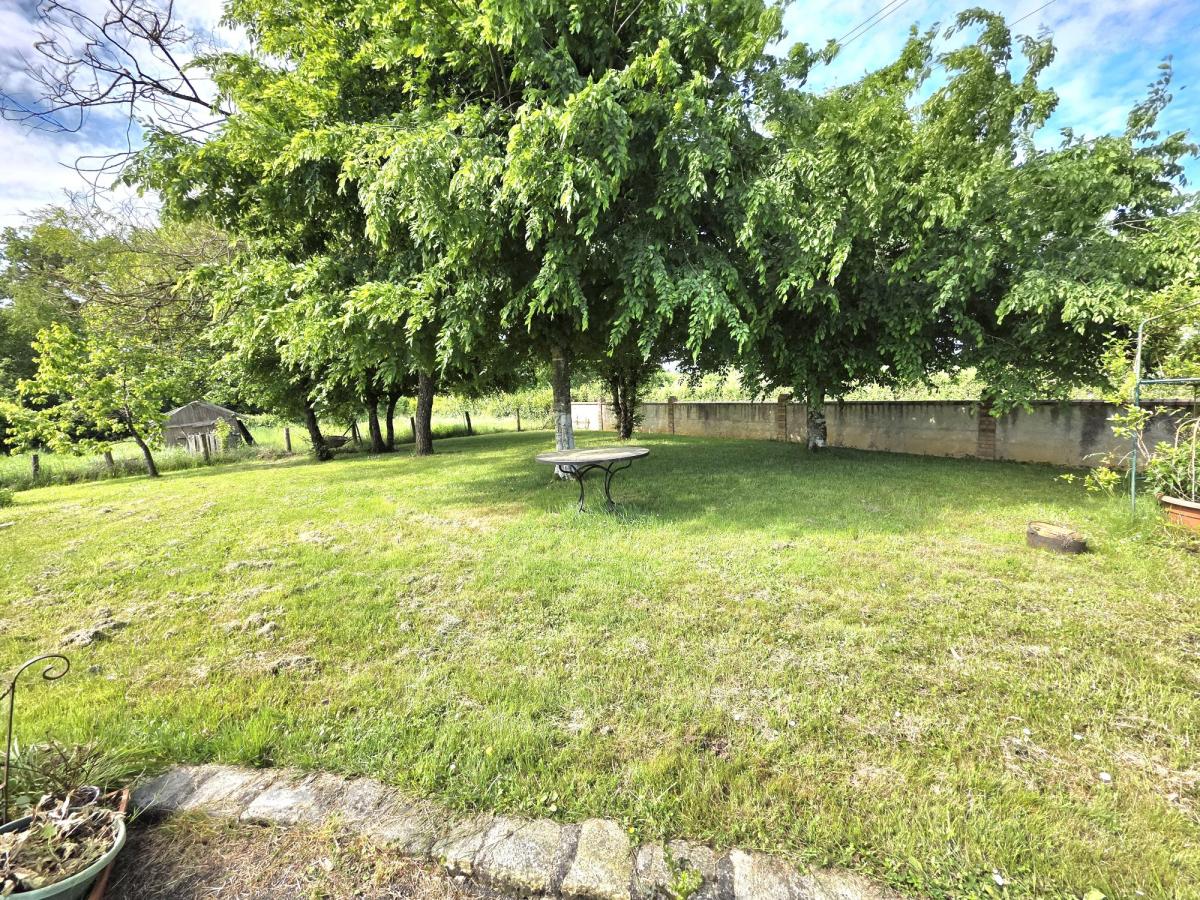 À l’extérieur, le terrain arboré est agrémenté d’un puits, d’une mare naturelle et de nombreux arbres fruitiers.
