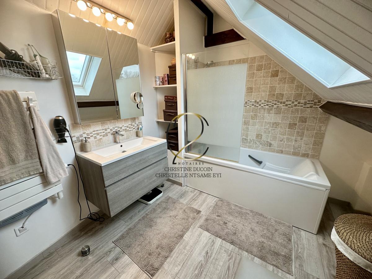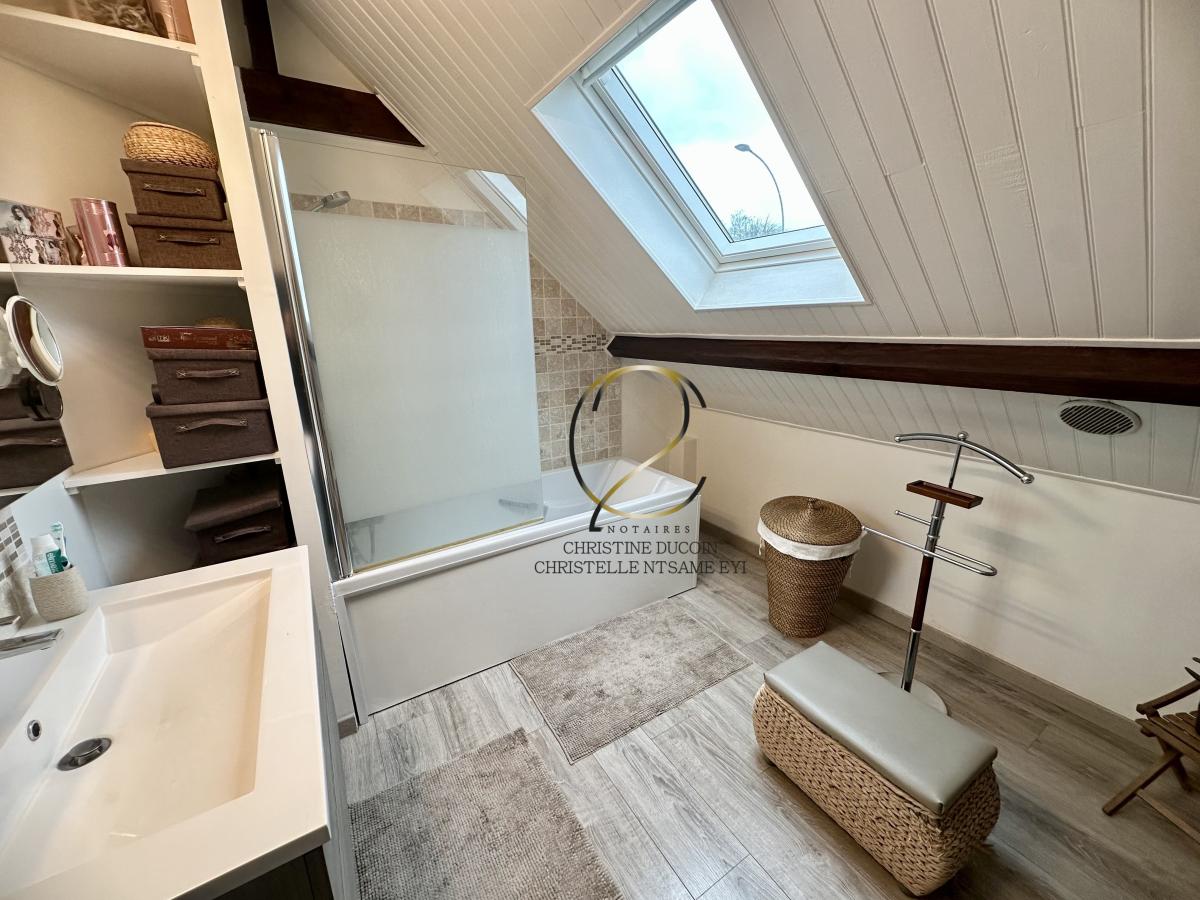 A l'étage, se trouve un palier desservant deux chambres confortables, une salle de bains et un second WC indépendant.