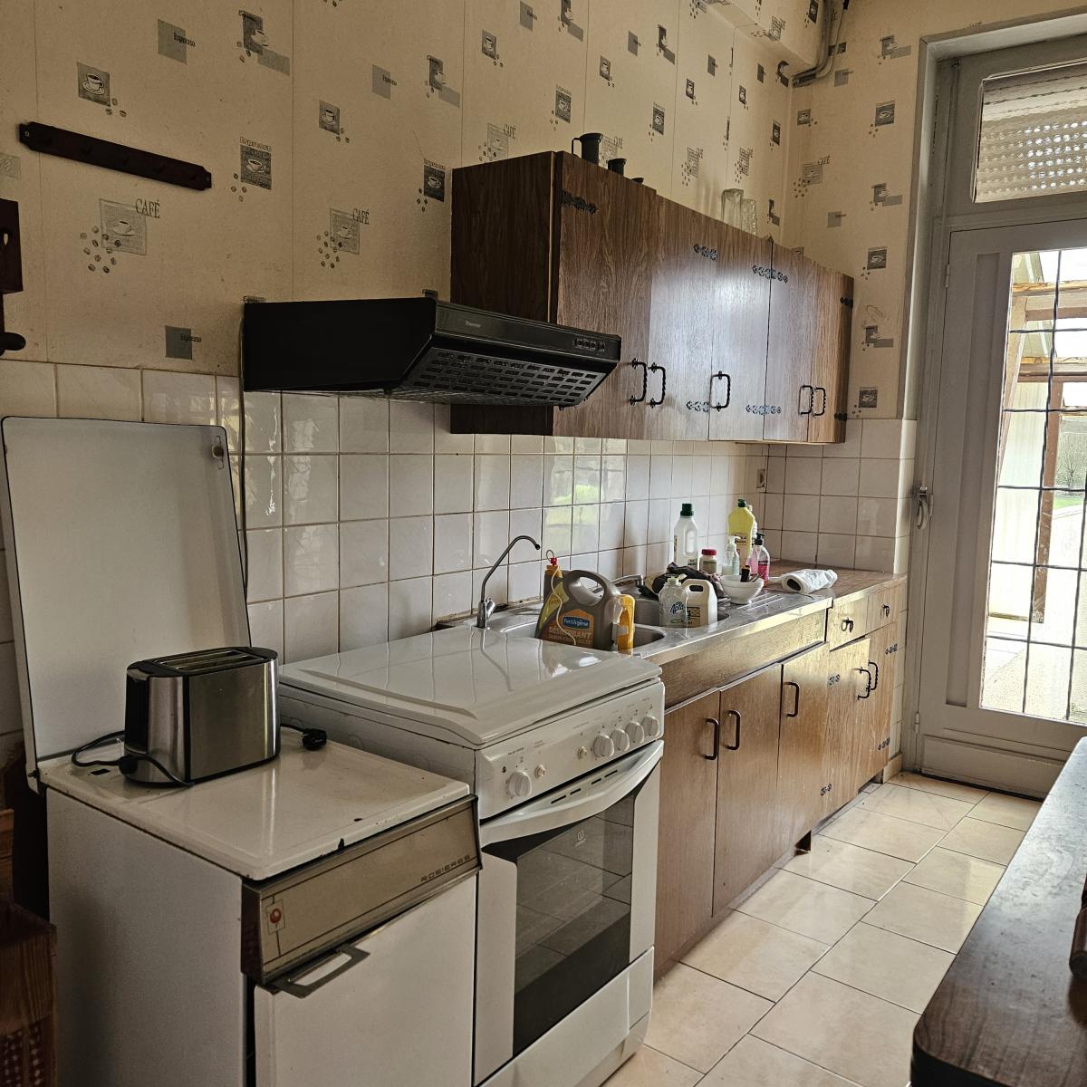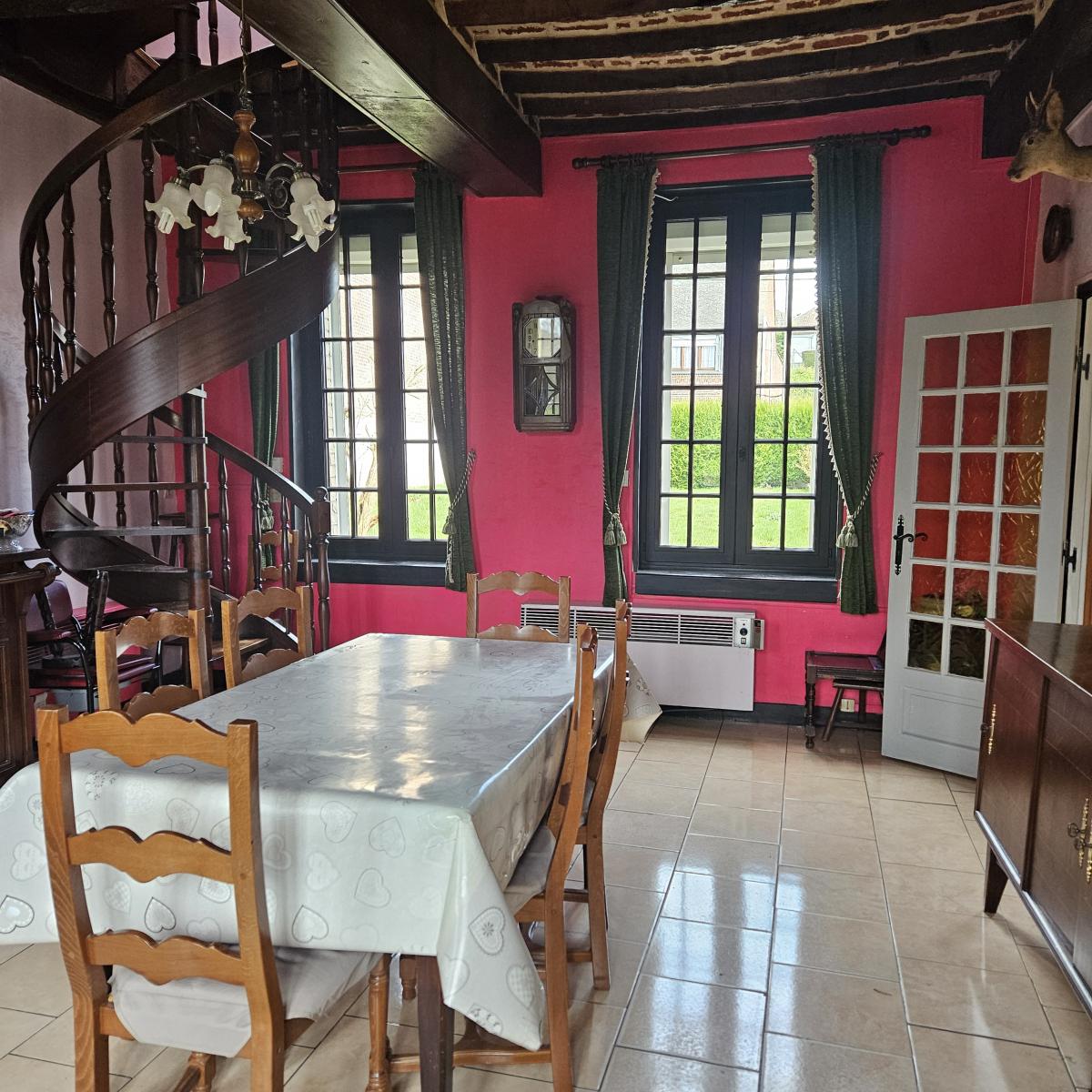 Maison élevée en partie sur cave d'un rez de chaussée comprenant : une entrée, une cuisine, une salle à manger, un salon, et WC