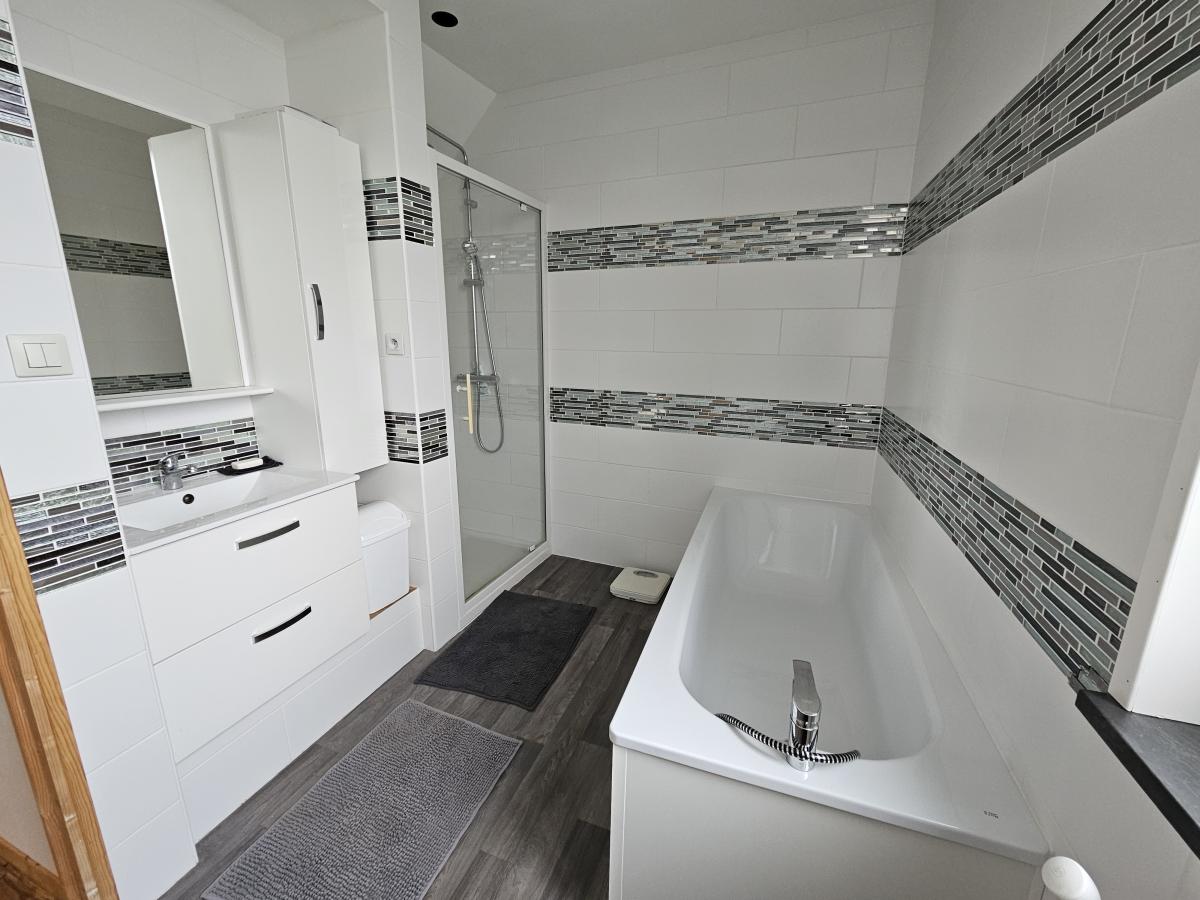 A l'étage un palier desservant une salle de bains avec douche et baignoire, et trois chambres - Grenier au dessus