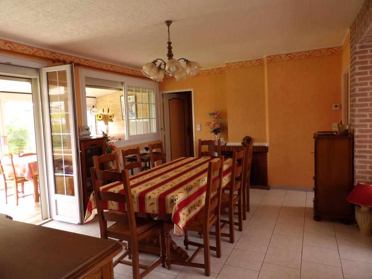 D'une surface habitable de 105 m², elle se compose au rez-de-chaussée d'un hall d'entrée, une cuisine équipée , un salon-séjour, une salle de bains et une véranda chauffée.