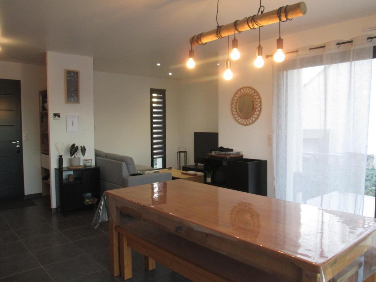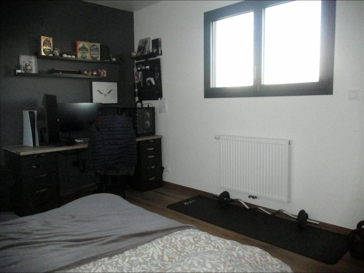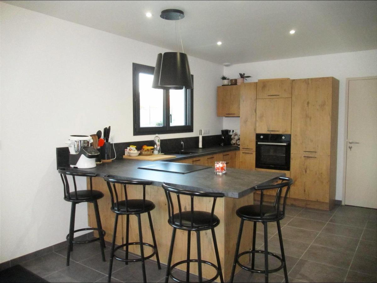 - au rez-de-chaussée : entrée, séjour-salon, cuisine ouverte aménagée et équipée, une chambre avec salle d’eau et placards, WC, garage ;
