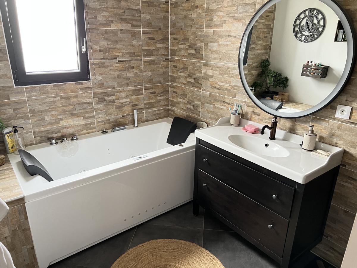 Très belle maison de 2019 de 105m², non mitoyenne, parfaitement entretenue, et comprenant au rez-de-chaussée, une entrée, un séjour / salle à manger, de 30 m², très lumineux et donnant sur un belle terrasse ensoleillée; une cuisine aménagée et équipée, une buanderie, une chambre avec salle d'eau privative, un wc et un garage.