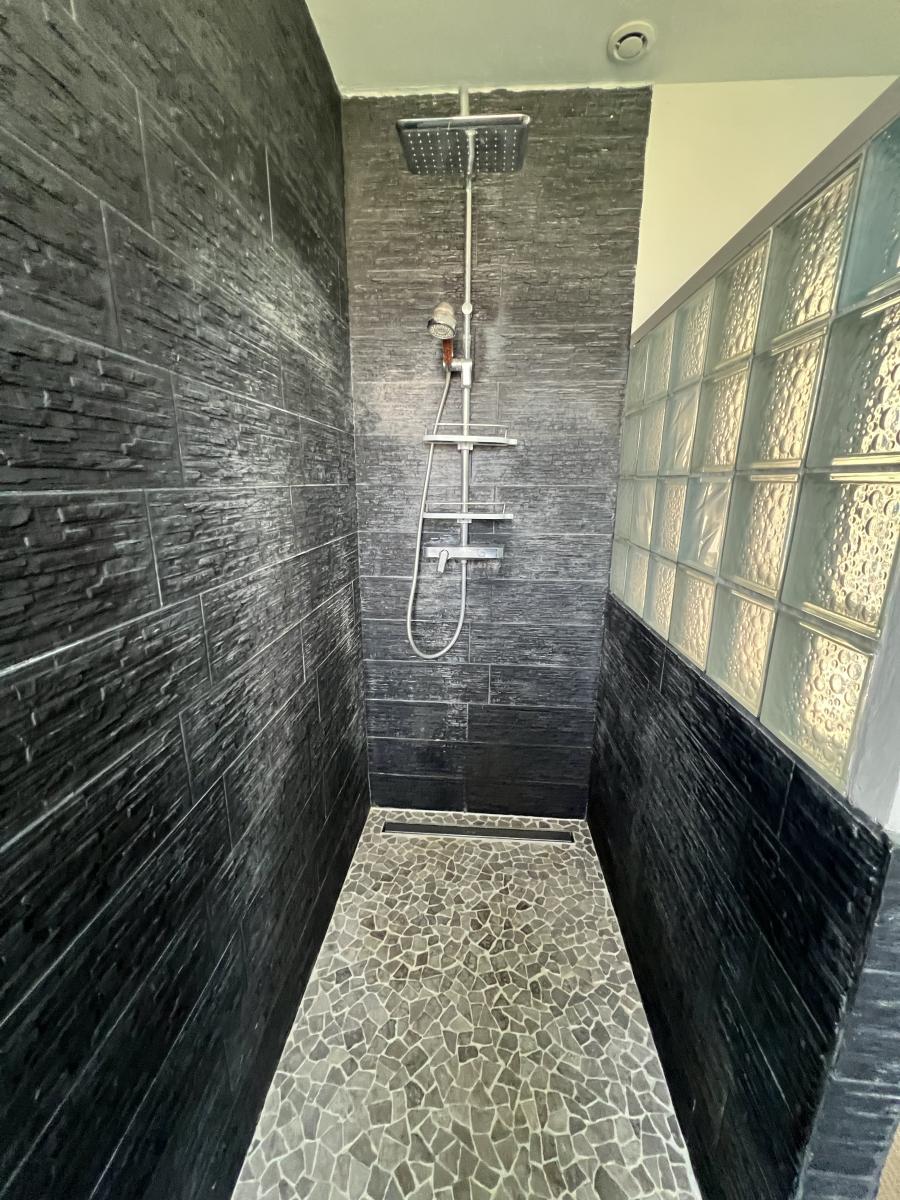 Au premier étage : trois chambres et salle de douche (avec meuble et vasque),
