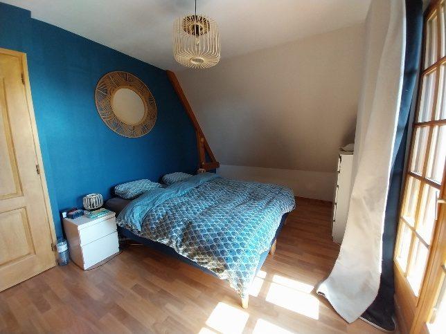 A l'étage : couloir avec placard desservant 3 chambres dont une avec balcon, salle de bains et wc.