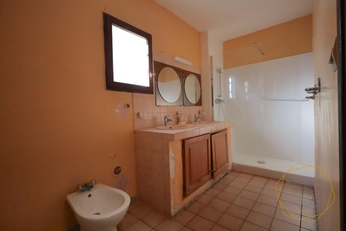 La maison est composée au rez-de-chaussée d'une entrée, d'un séjour avec cuisine ouverte, d'un dégagement, d'une chambre d'une salle de bains et de wc séparés.