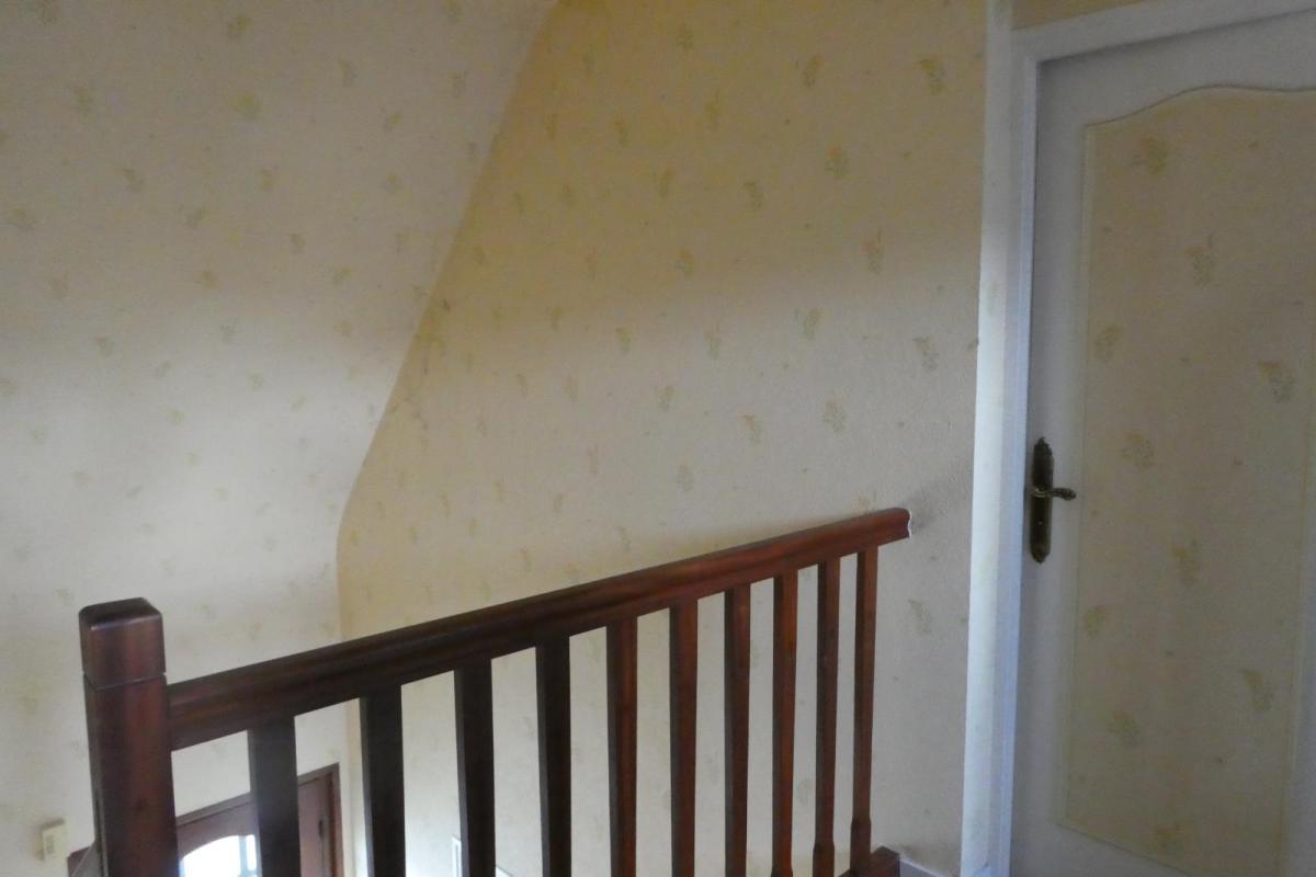 A l'étage, le palier dessert  deux chambres avec chacune leur grenier ( possibilité d'agrandissement ), salle d'eau et WC.