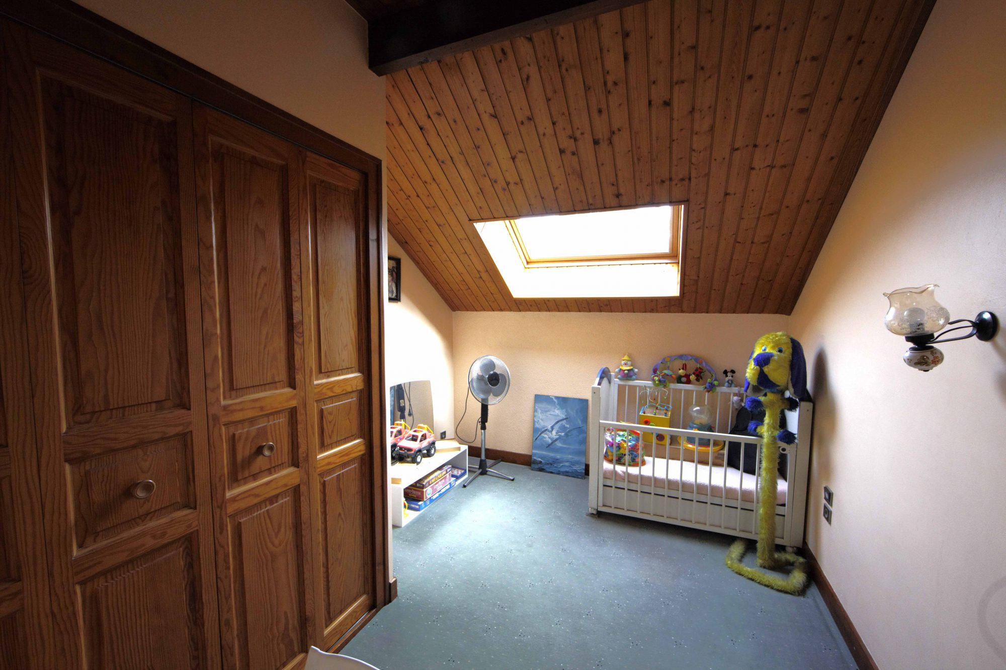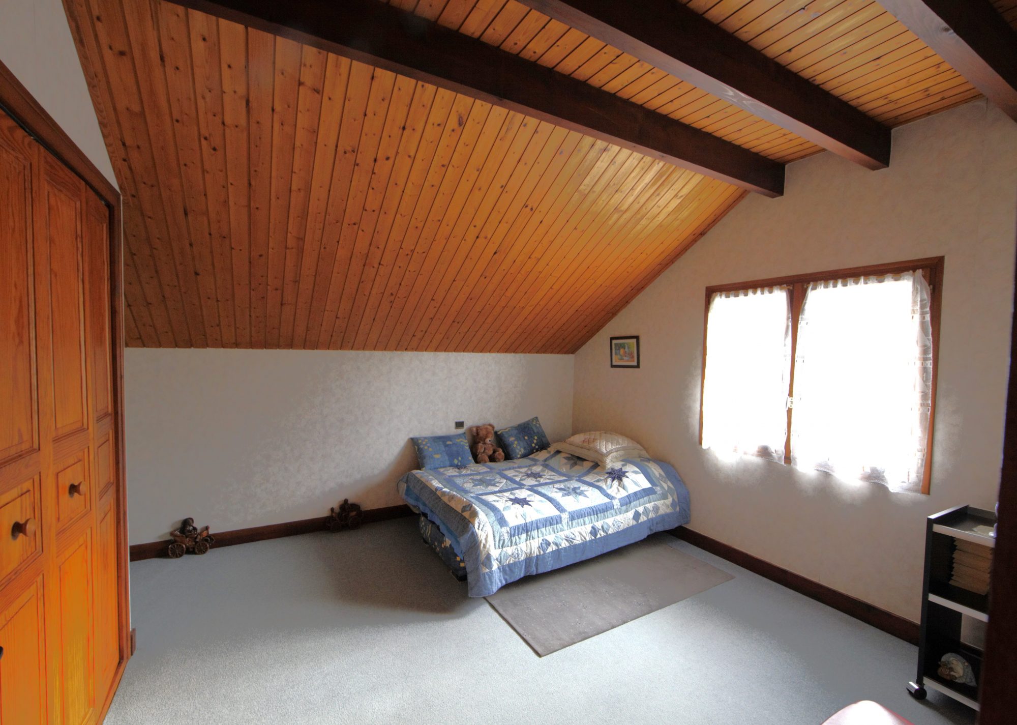A demi-niveau: une chambre, une salle de bains, wc, cellier.