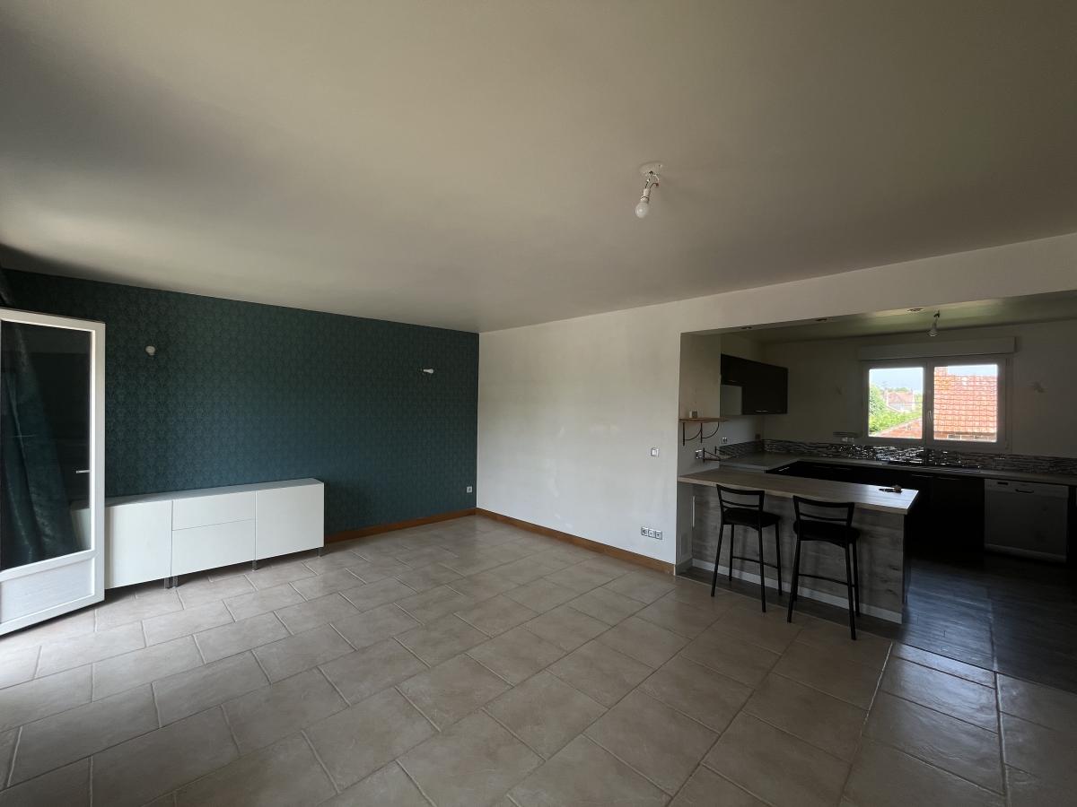 Maison de 110 m2 individuelle comprenant au rez de chaussée, grande pièce cuisine d'été, garage. Au premier étage, cuisine ouverte sur grand séjour, couloir, trois chambres, salle d douche, toilettes