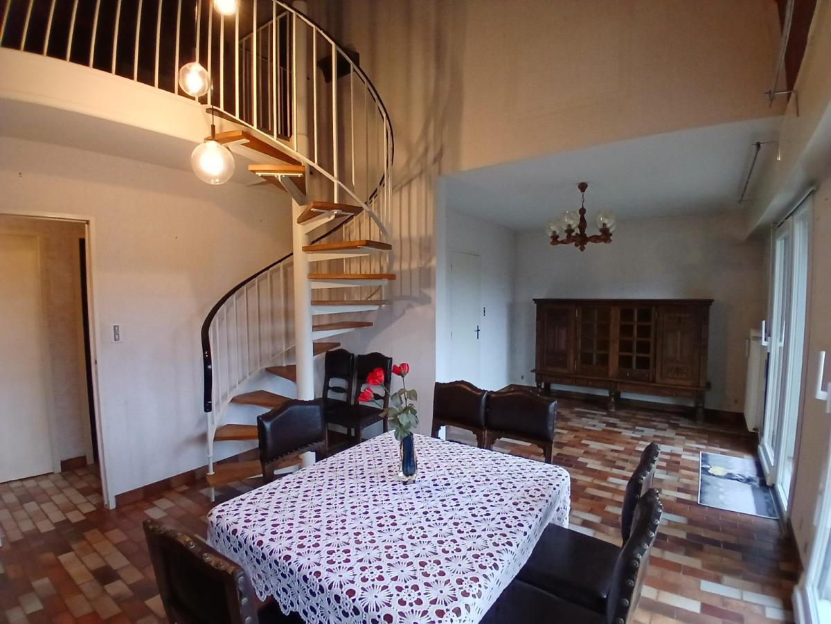 PRIX EN BAISSE MAISON DE 1975 DE TYPE T5 DE 110 M² HABITABLE SUR GRAND TERRAIN Cette maison atypique sur grand terrain se compose : D'une entrée donnant accès à une cuisine ; Un long couloir dessert un WC ; une salle de bain; 2 chambres 1 pièce de rangement ; Un grand salon A L'étage Une mezzanine ouvre sur 2 chambres et greniers ; Au sous sol Une chaufferie avec chaudière de 10 ans ; Un garage pour une voiture Une buanderie et une cave Prévoir travaux de rafraichissement raccordement tout à l'égout Le tout sur une superficie de 1571m² maison comprise FAIRE OFFRE APRES VISITE